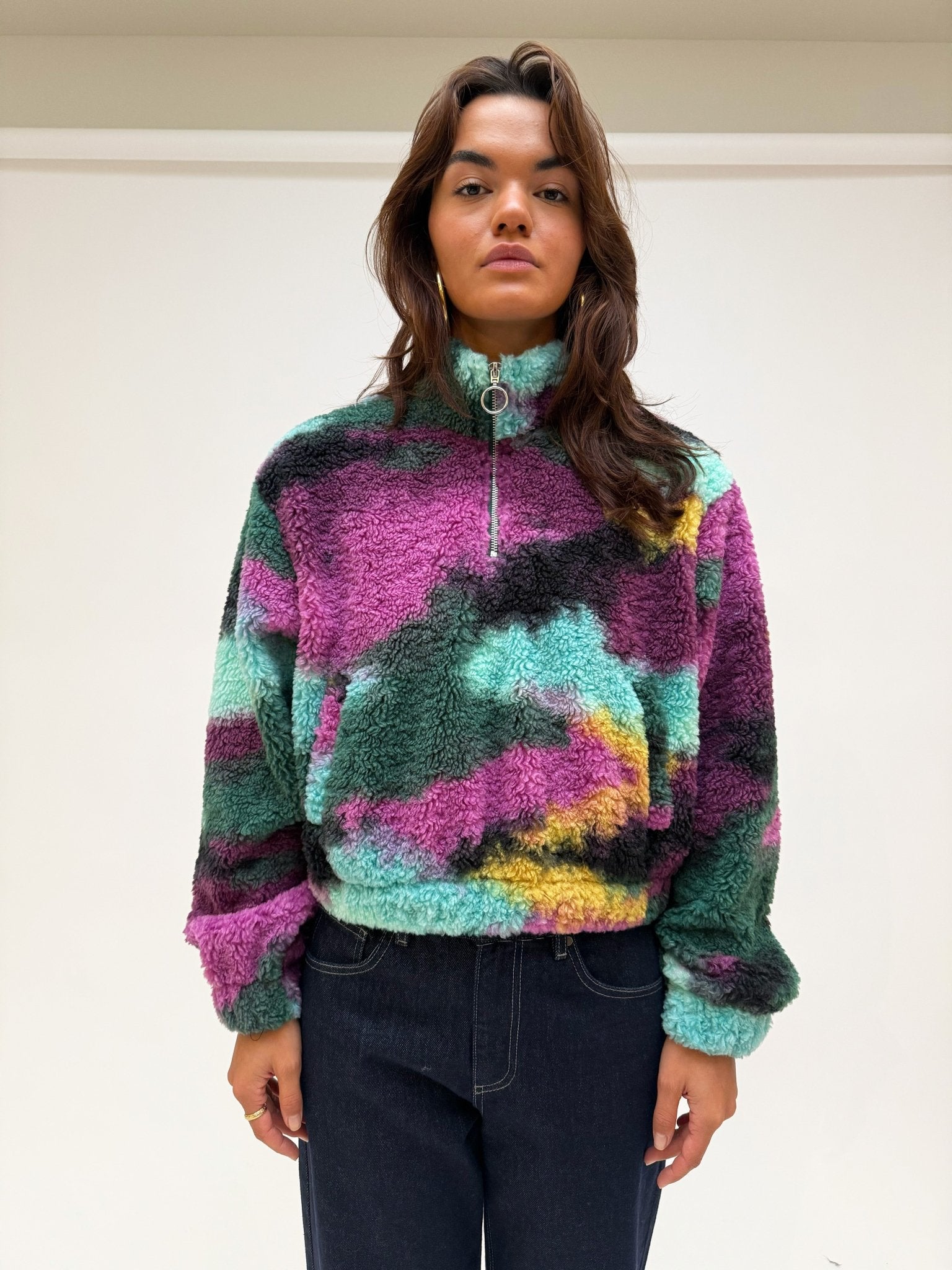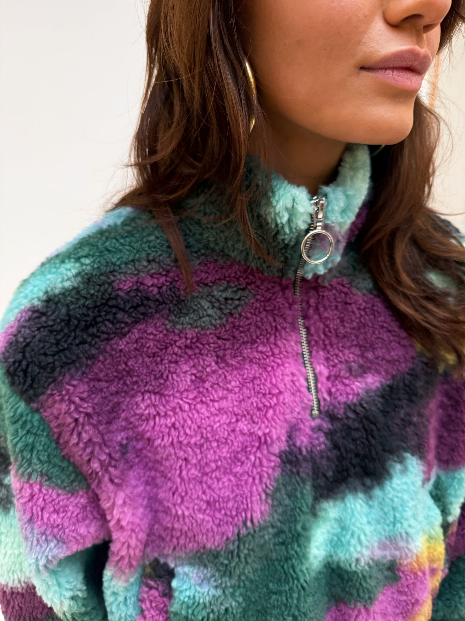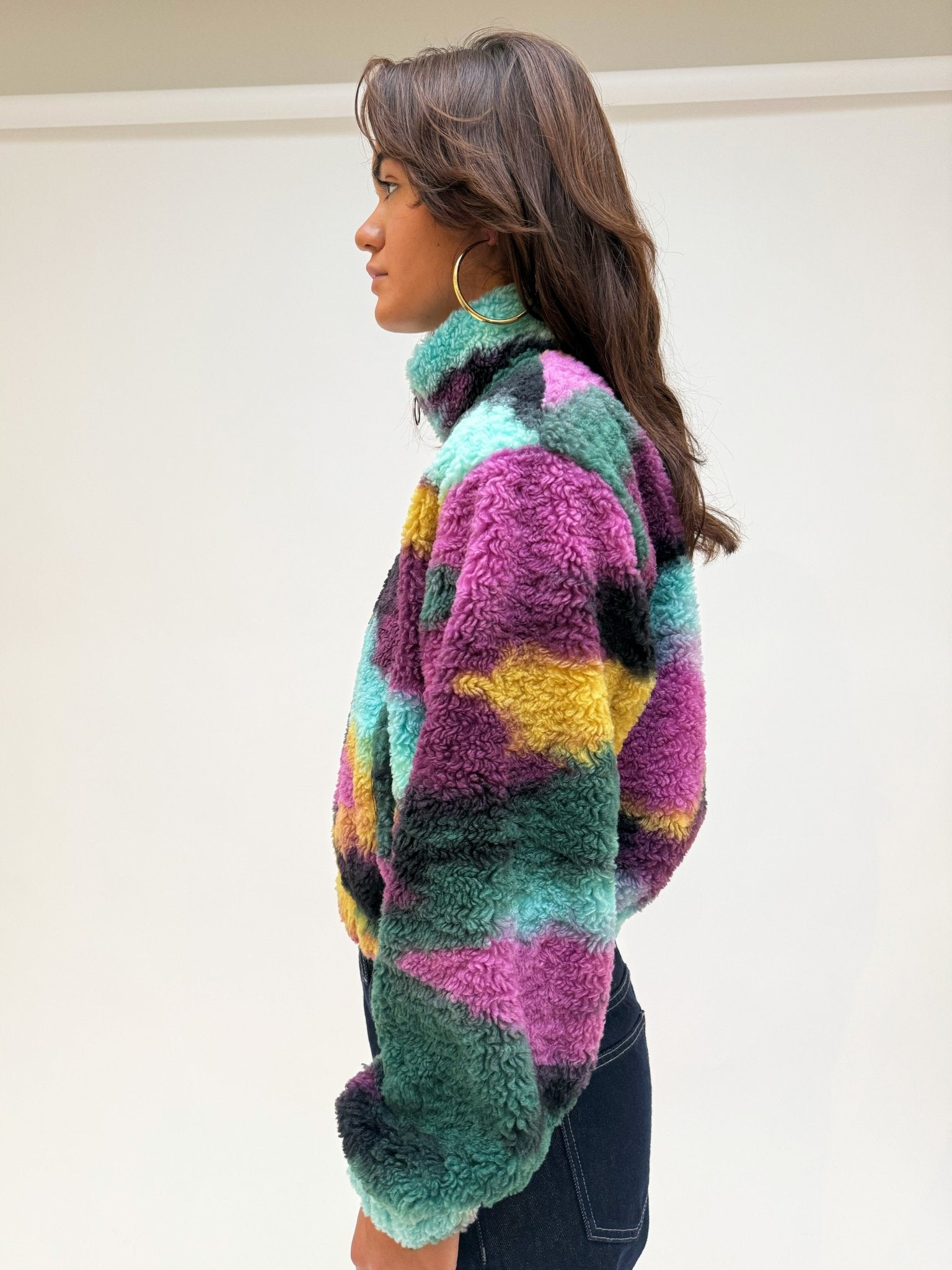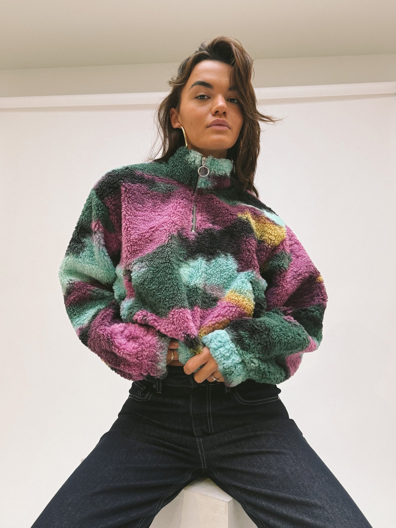 Soft, playful, and vibrant, this fluffy half-zip sweater will instantly bring good vibes to your wardrobe.