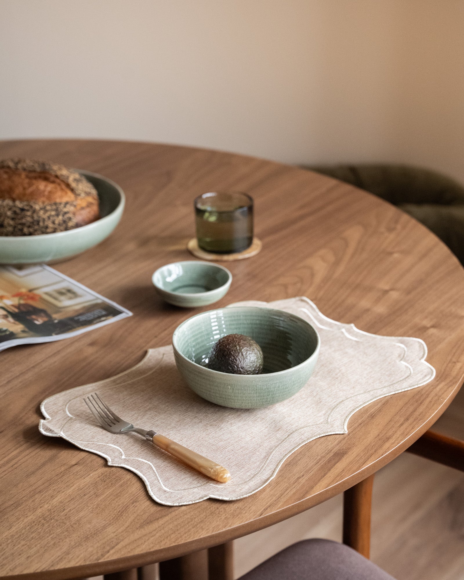 The Belle Beige Placemat is an elegant beige placemat that adds style and refinement to any dining table. Its neutral color makes it suitable for any interior style and occasion, whether it's a formal dinner party, a family gathering, or a cozy meal with friends. This stylish placemat protects your table while creating a warm, luxurious table setting.