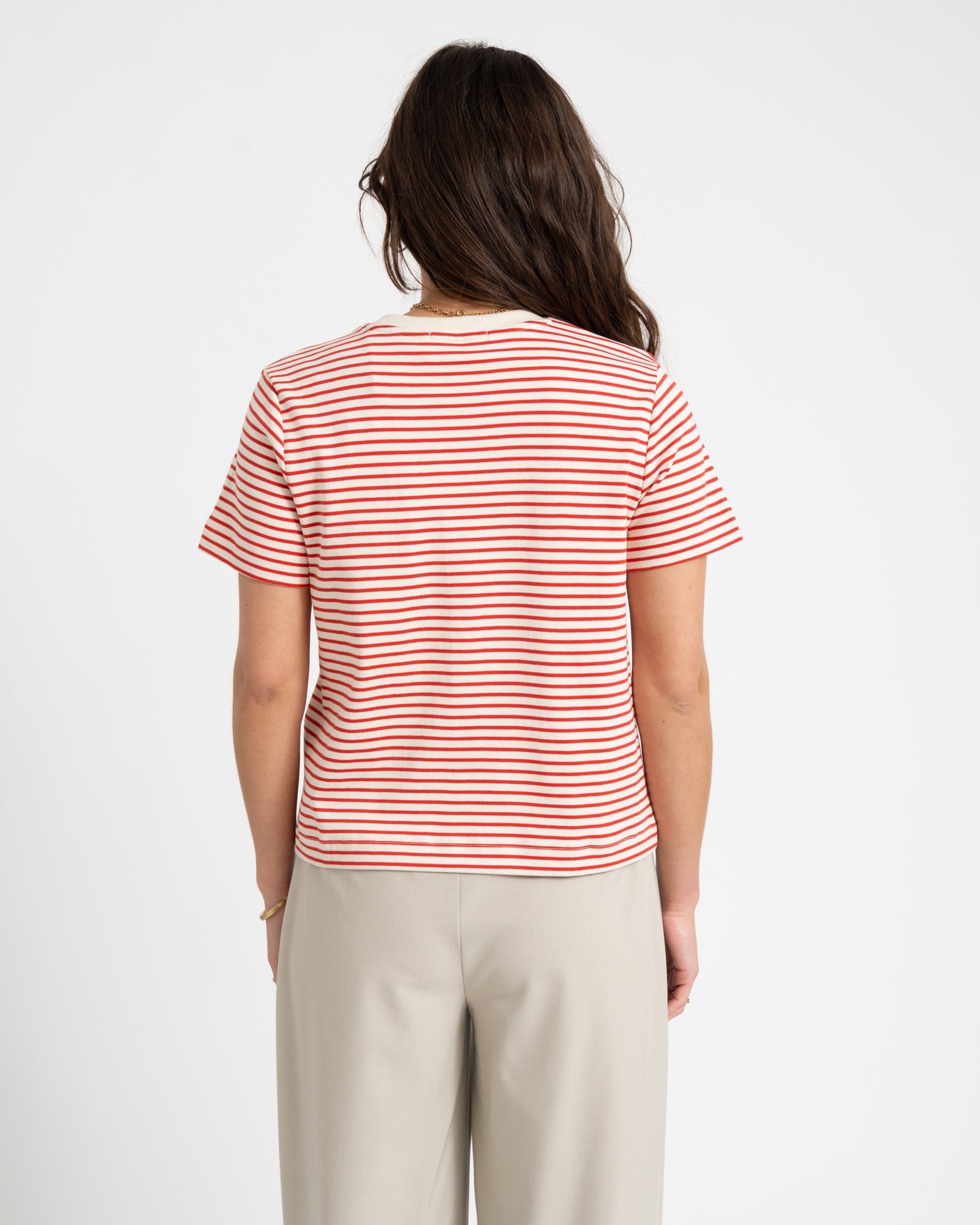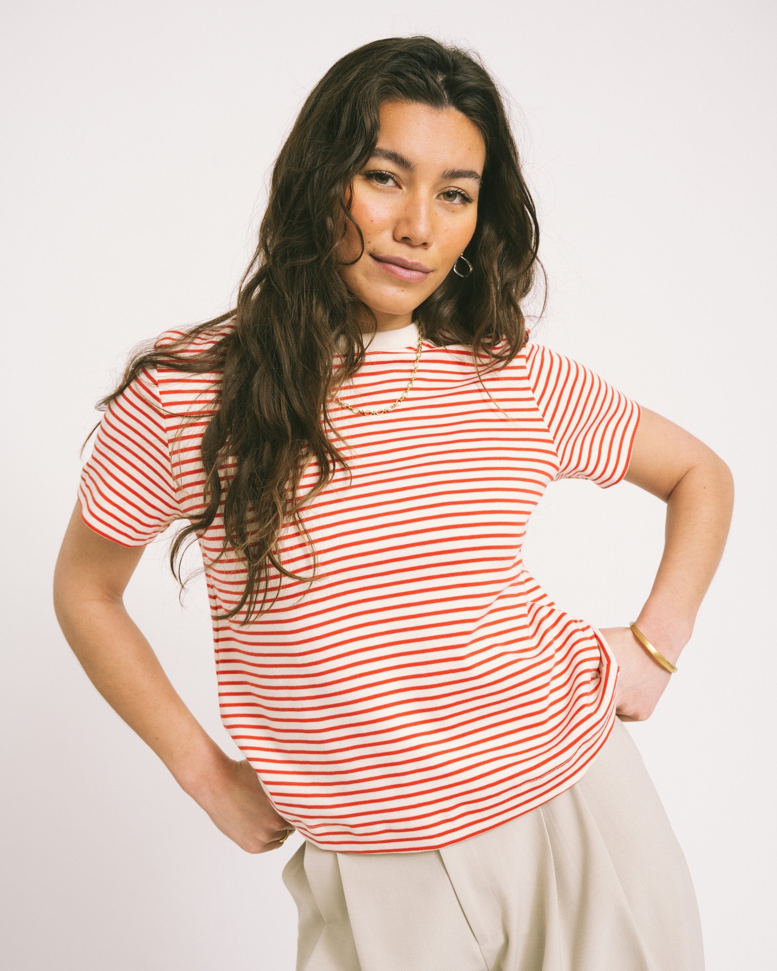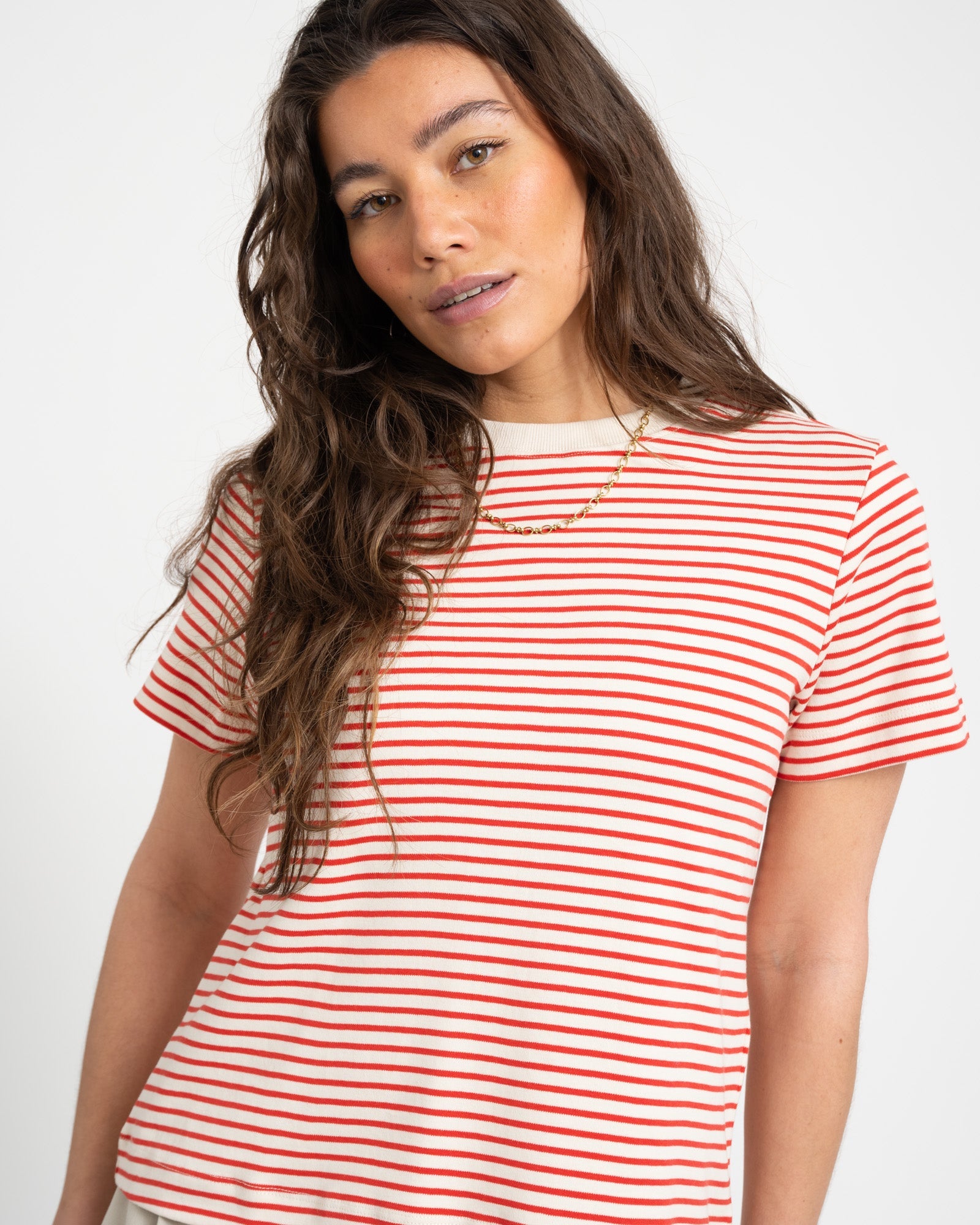 The classic red and white stripes give it a timeless look, while the soft fabric and relaxed fit ensure ultimate comfort.