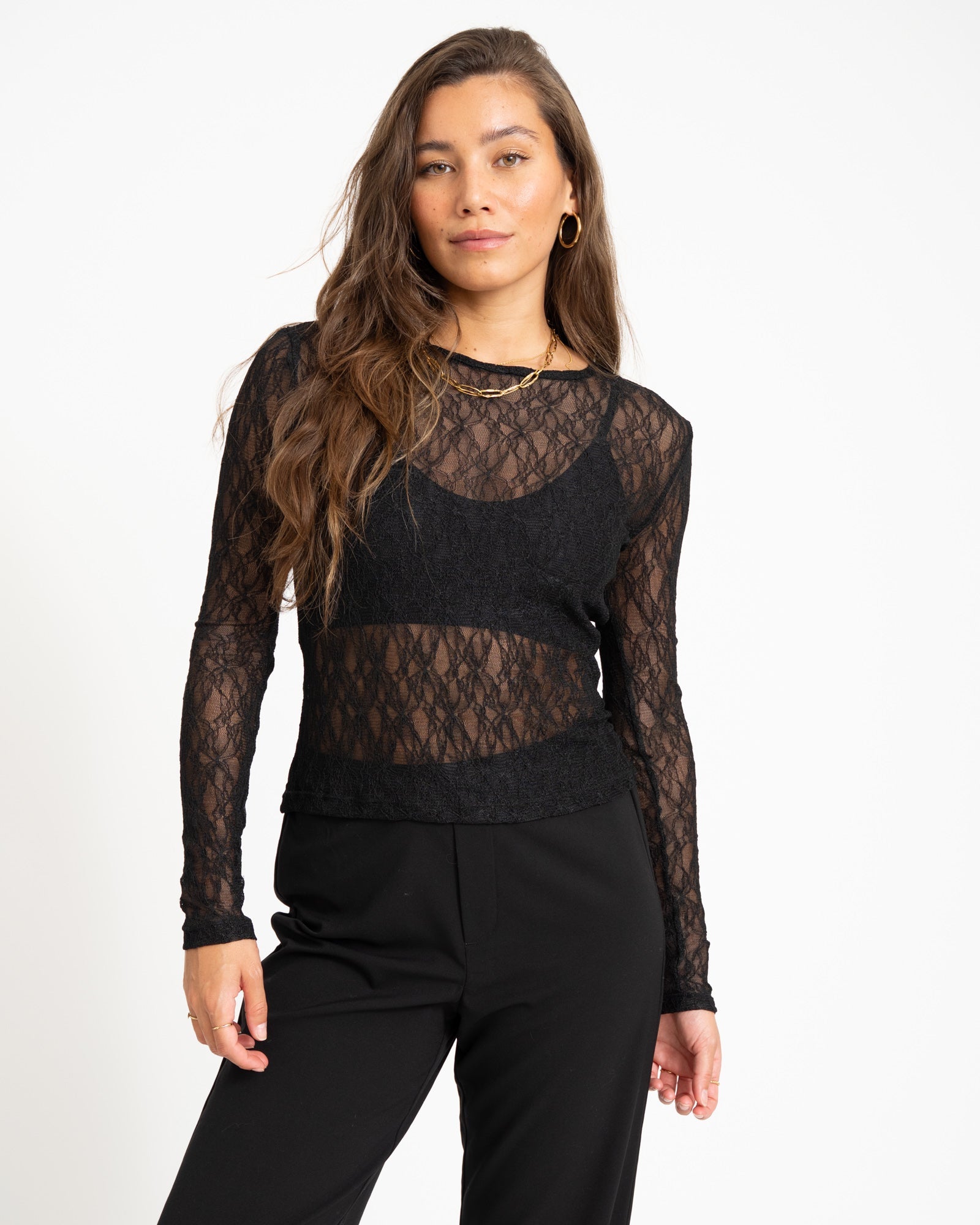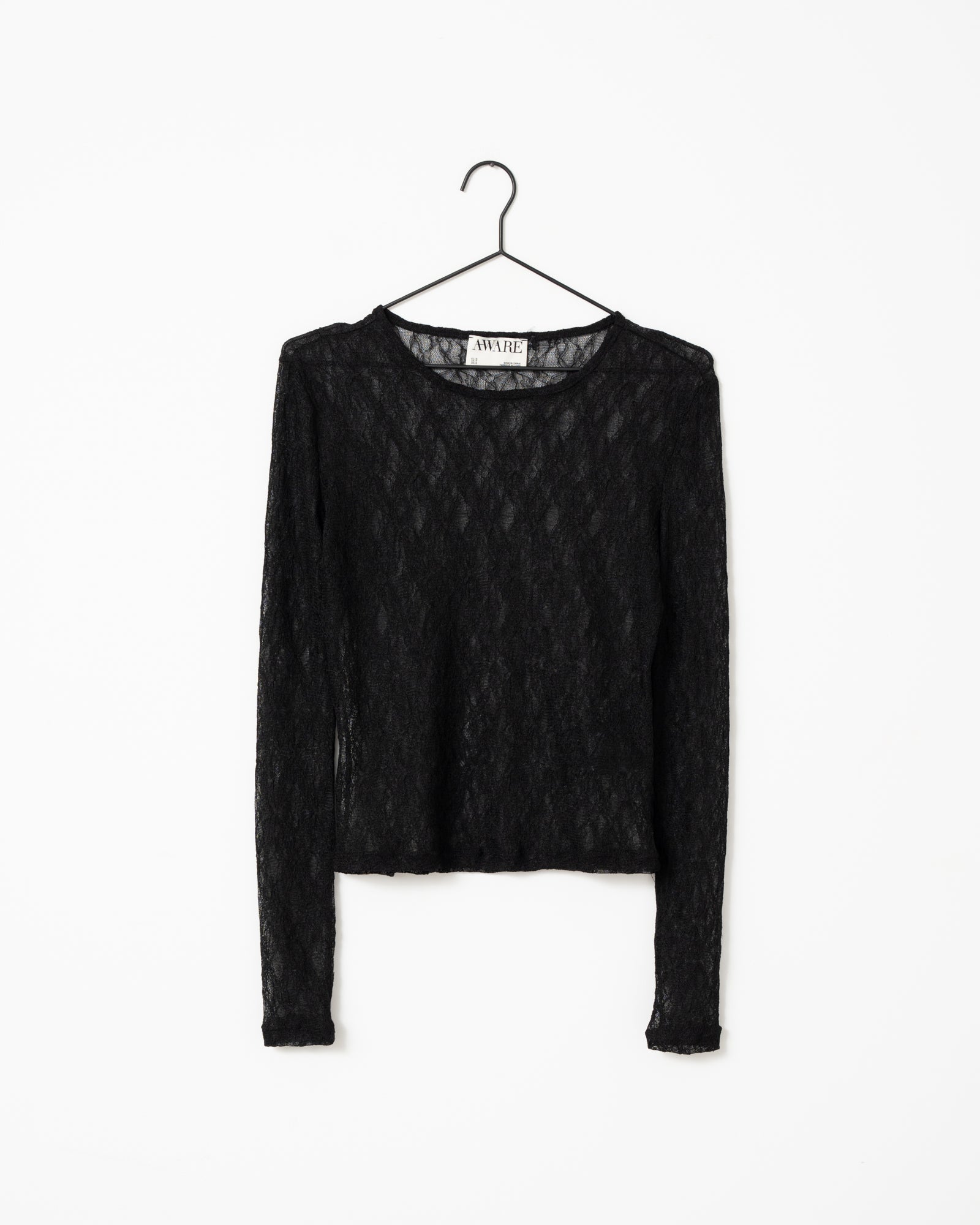 Semi-sheer with long sleeves and a classic round neck. Wear it over a bralette or layer it under a blazer.