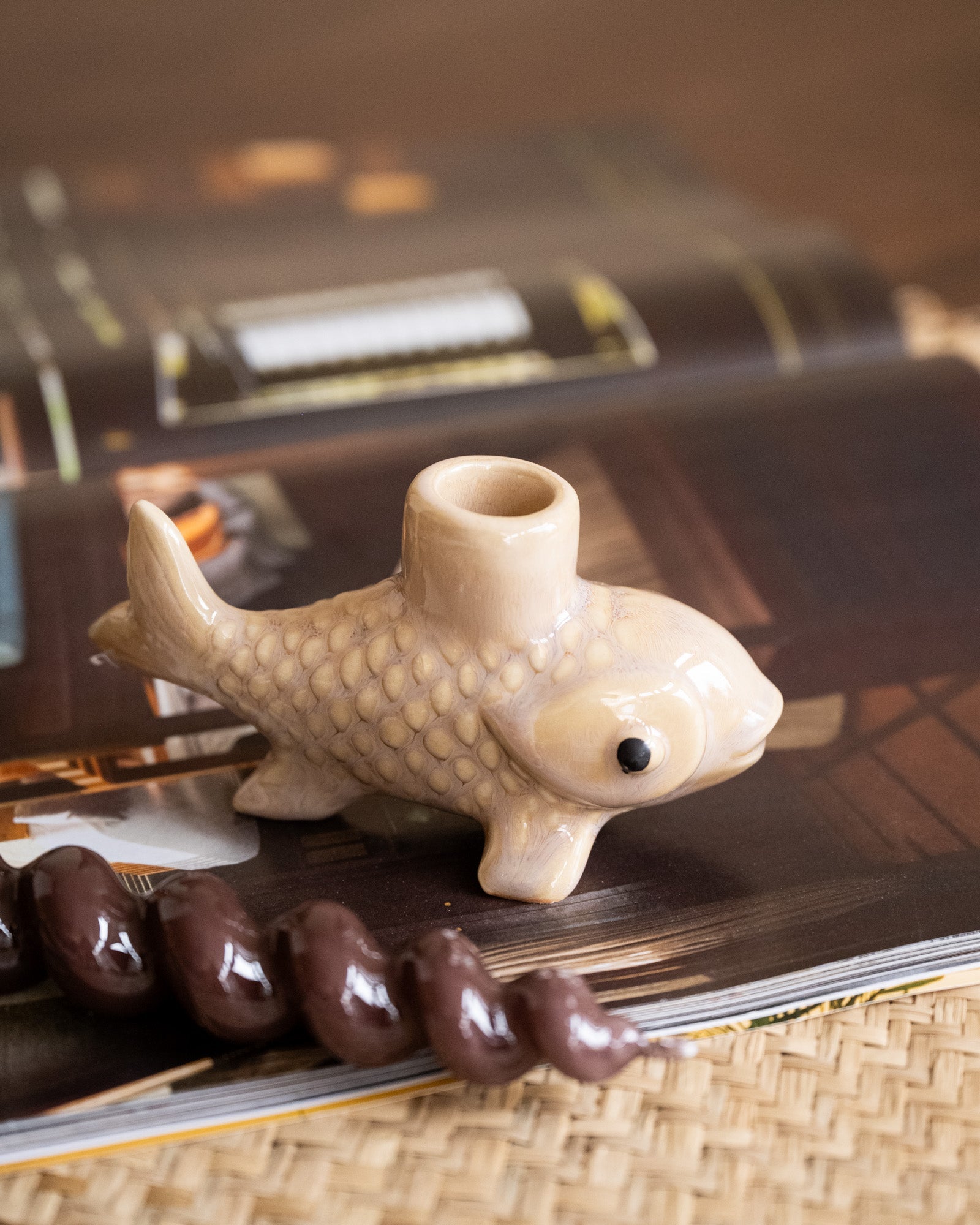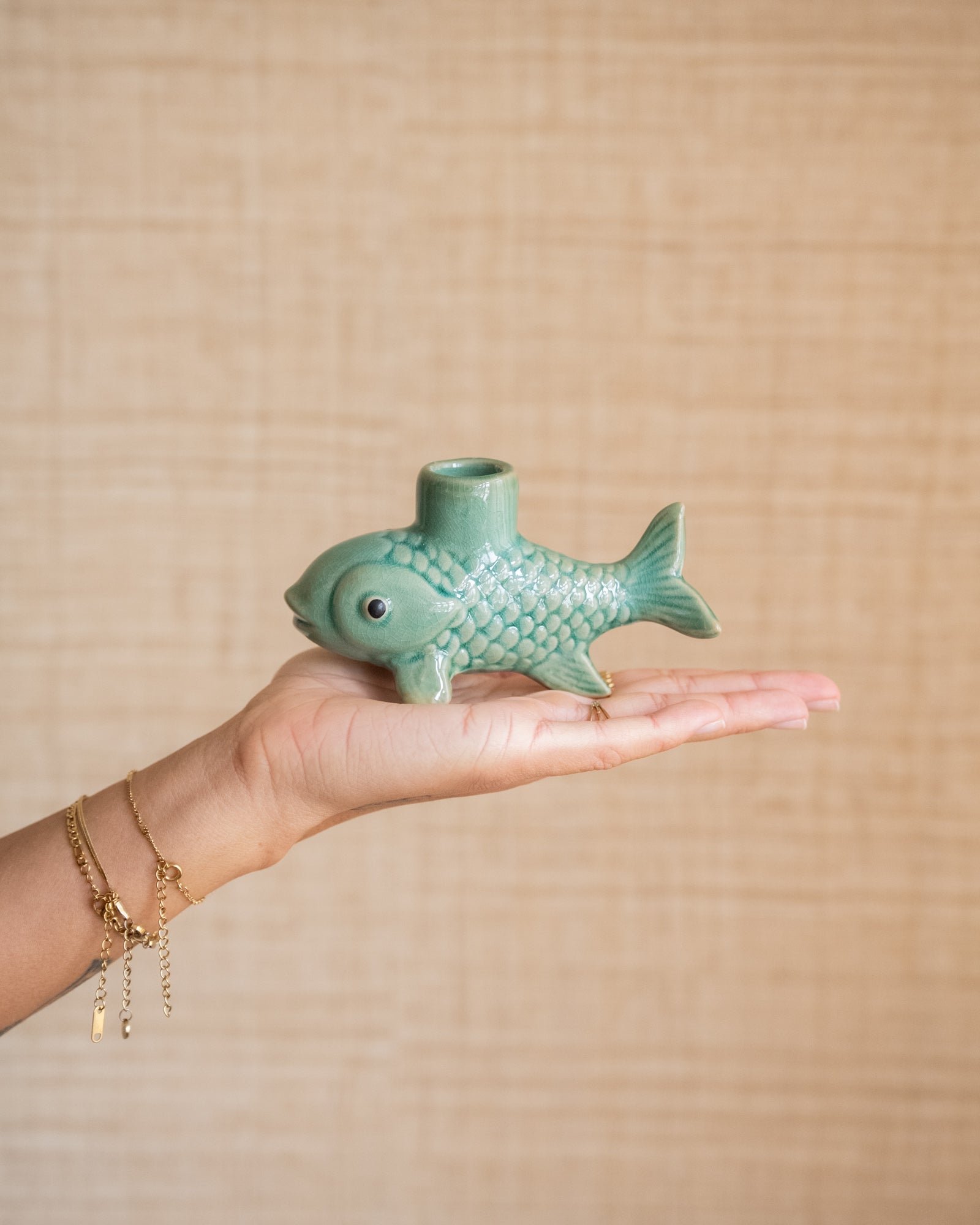 Bloomingville - Candle Holder Fish Beige / Aqua