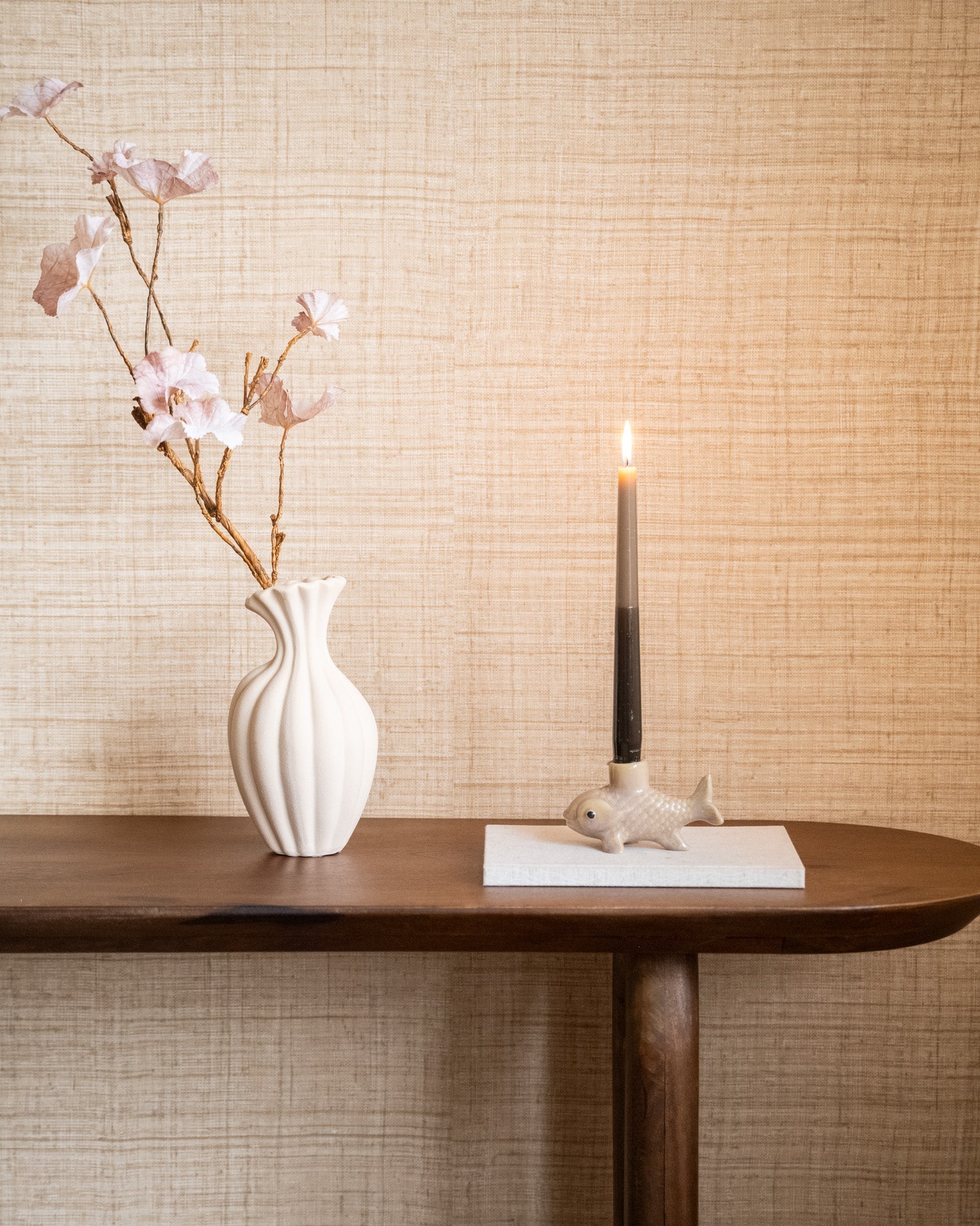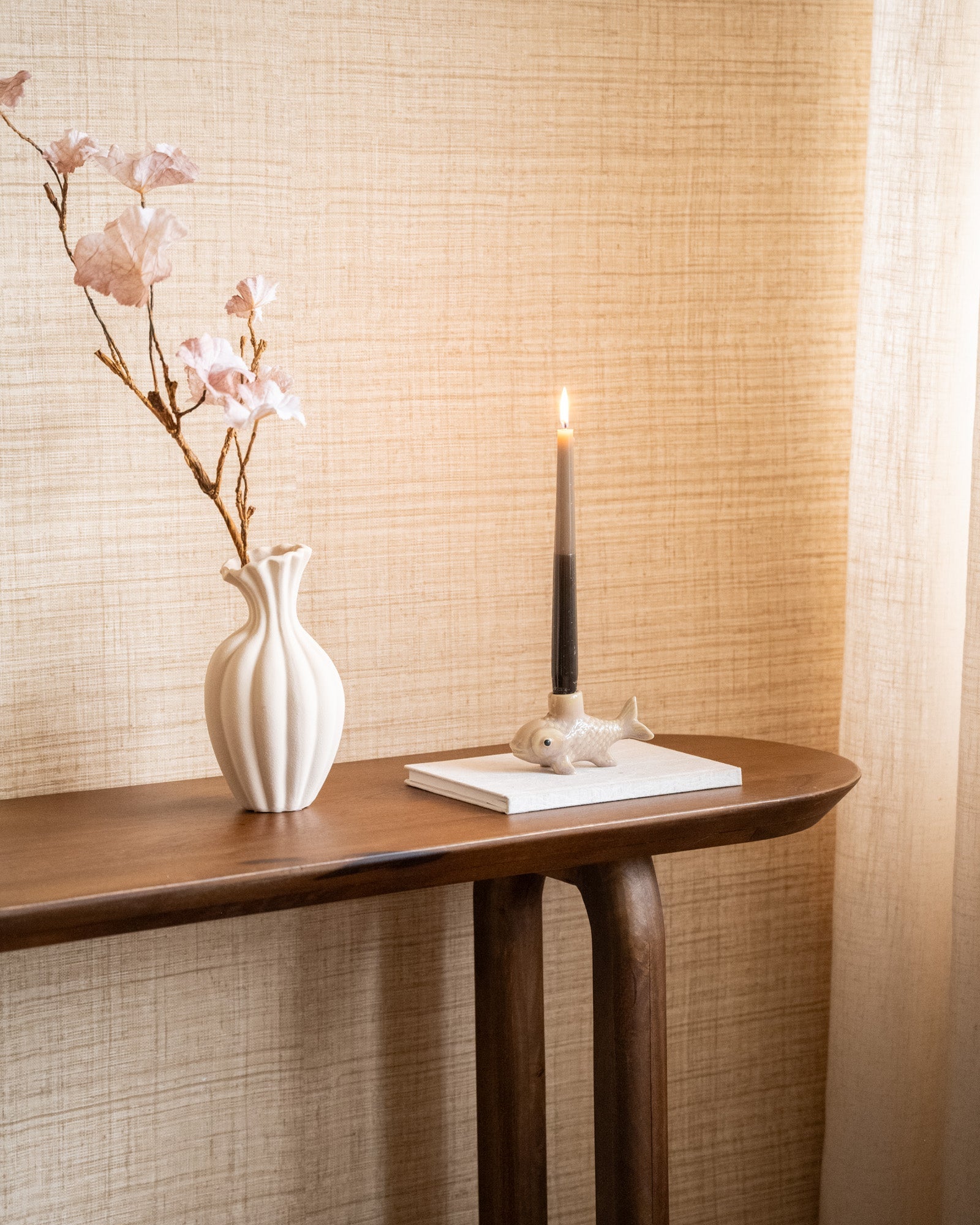 Add a touch of playfulness to your interior with the Bloomingville Fish Candle Holder. This charming fish-shaped candlestick, available in turquoise and beige, adds a touch of color and character to any space. The glazed finish with subtle variations makes each piece unique. Perfect for displaying your favorite dinner candle and creating a warm, atmospheric accent.