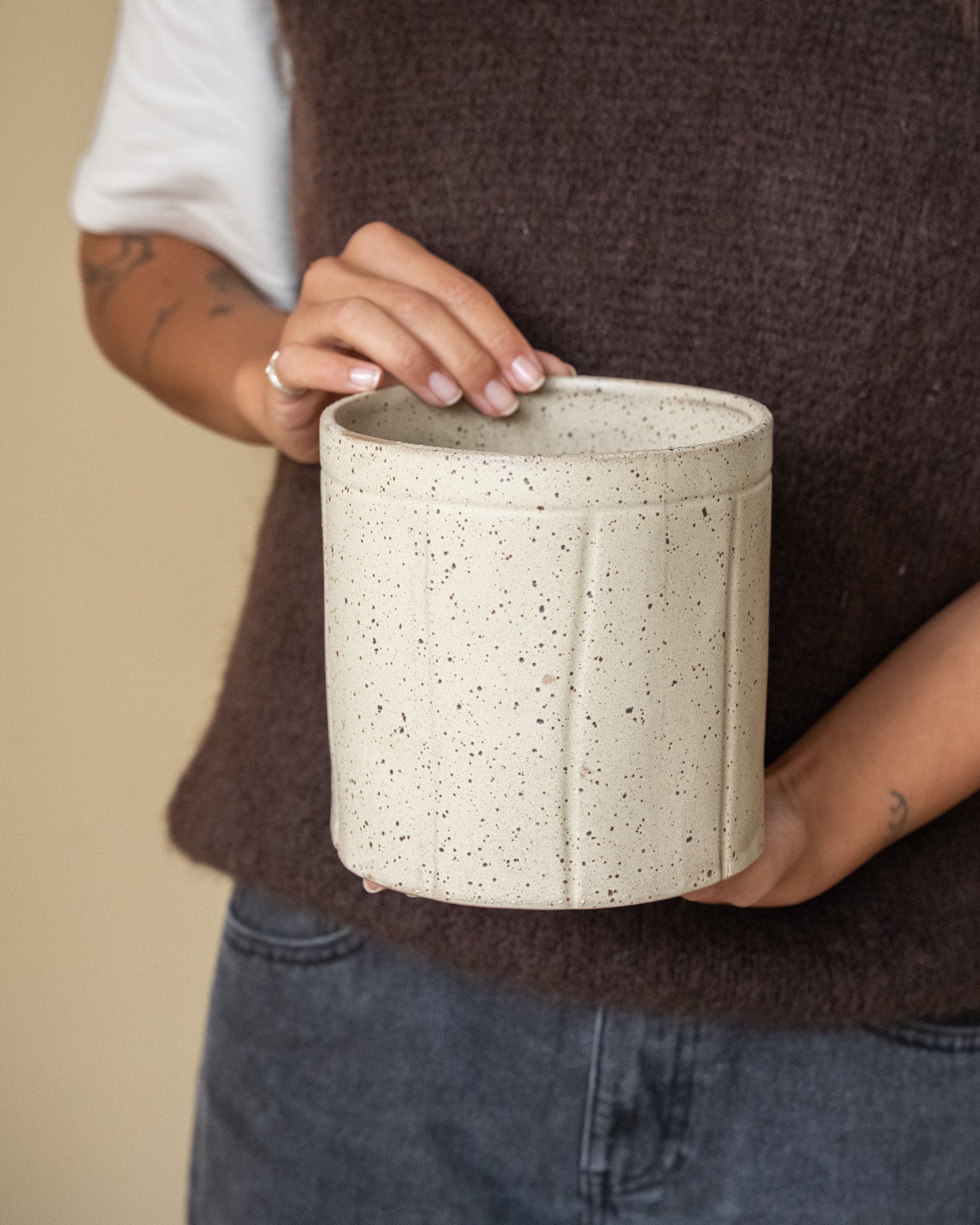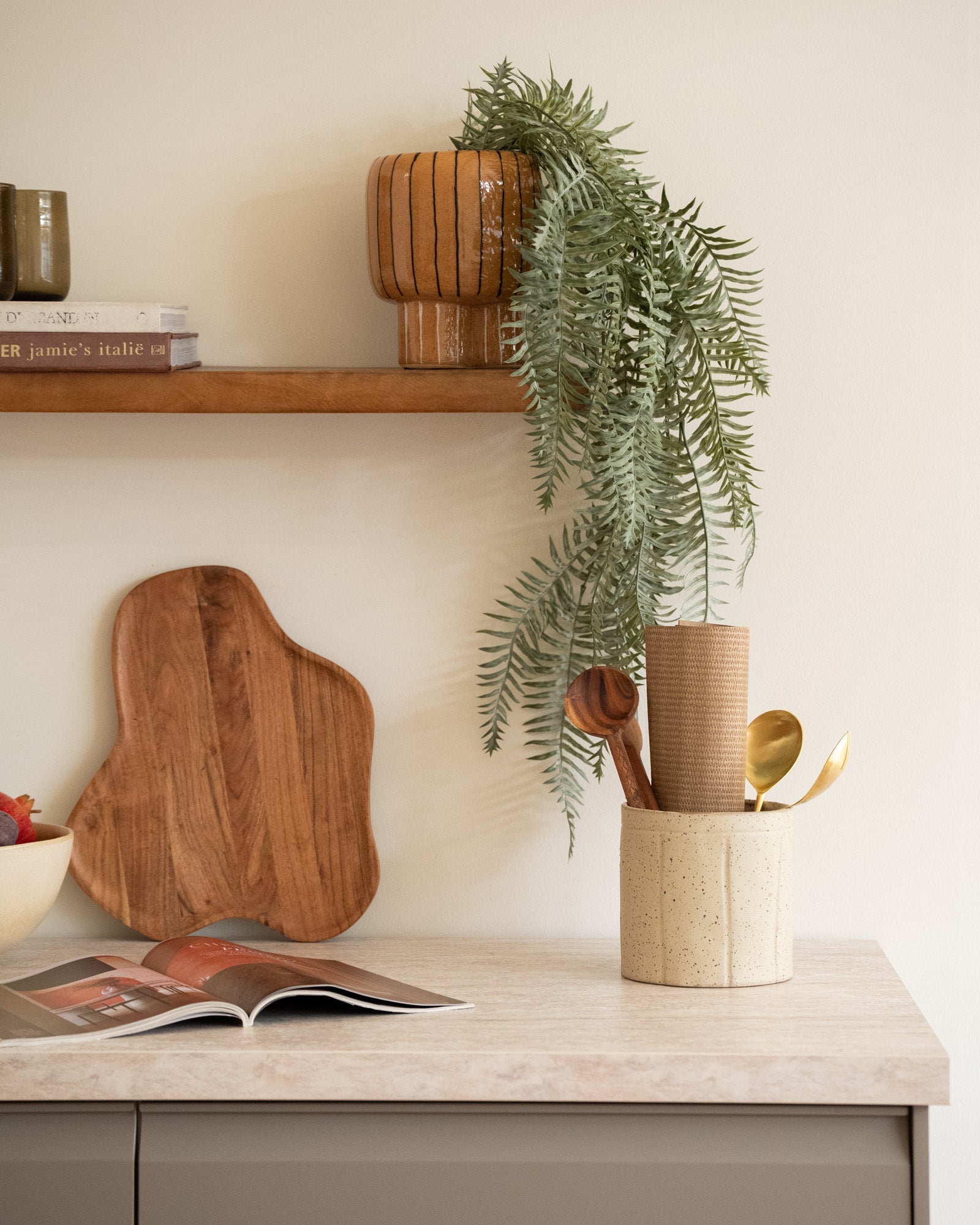 Keep your kitchen organized with the Eliaz Cutlery Jar. This stylish jar is perfect for storing spatulas, spoons, and other kitchen utensils. Thanks to its warm, natural colors and organic design, it's not only practical but also a real eye-catcher on your countertop. Perfect addition to your Japandi interior.