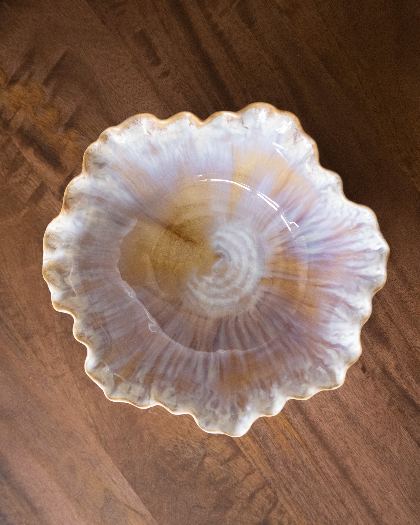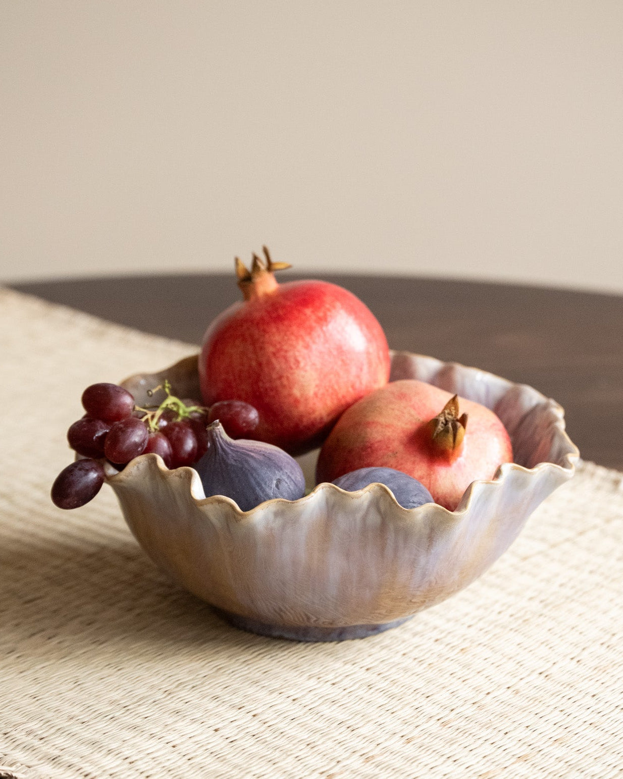 Bring color and character to your table with the Nash Serving Bowl from Bloomingville. This stylish stoneware bowl with a reactive glaze features a unique, wavy rim and soft earth tones that instantly catch the eye. Perfect for serving salads, pasta, or fresh fruit, it's a real eye-catcher in your home.