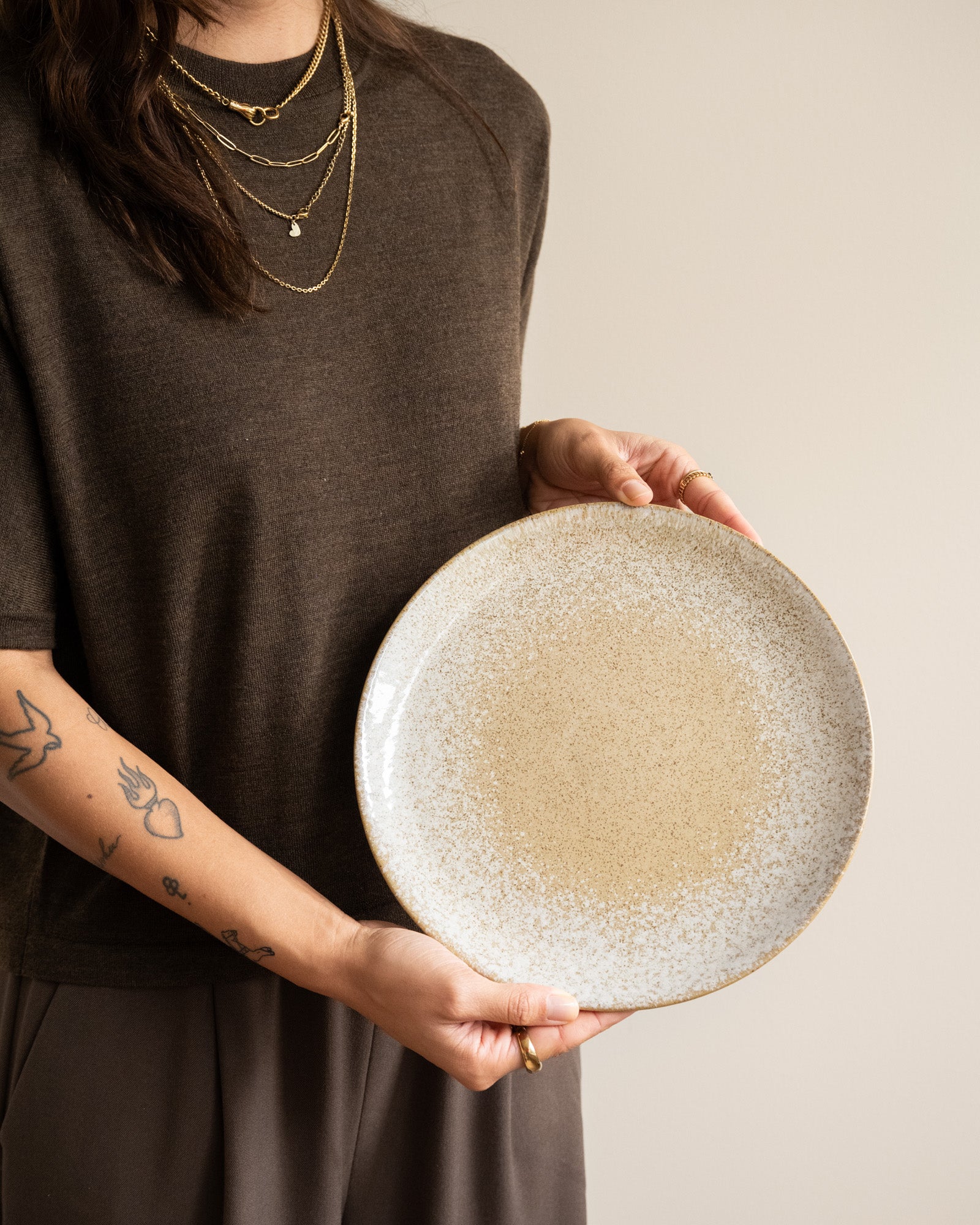 Make every dinner a special occasion with the Bloomingville Paula Beige Dinner Plate. The unique glaze in soft white and gold tones creates a warm, natural look at the table. Made of sturdy stoneware, it's perfect for everyday use or a cozy dinner with friends.