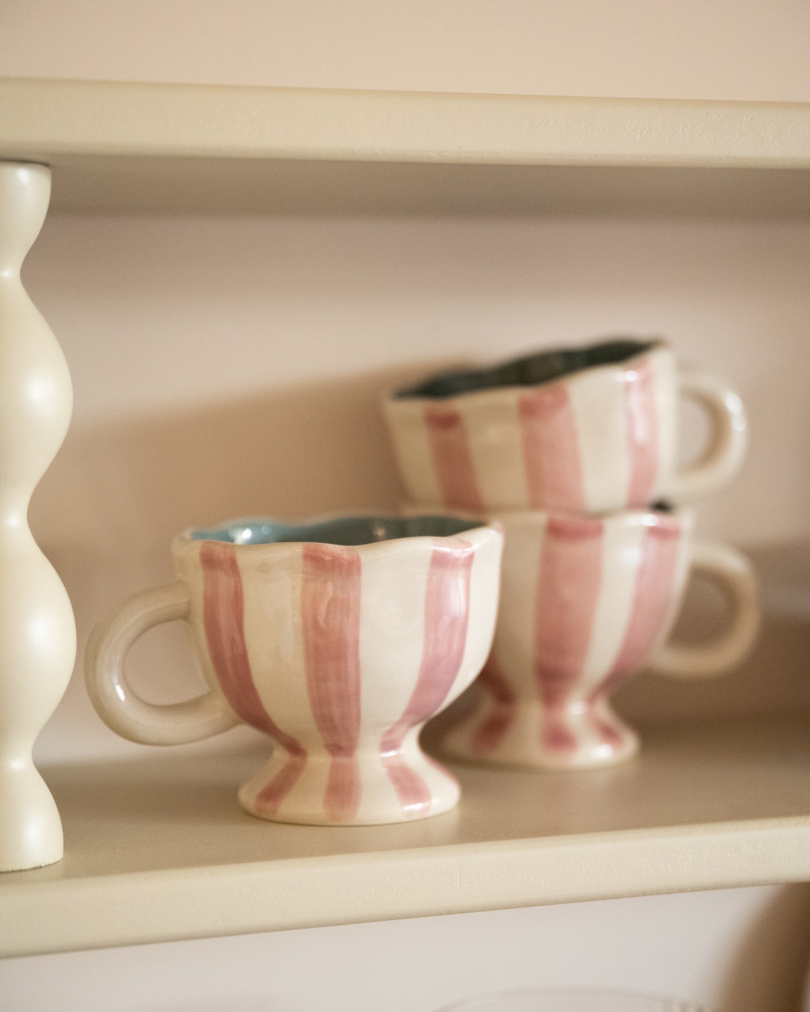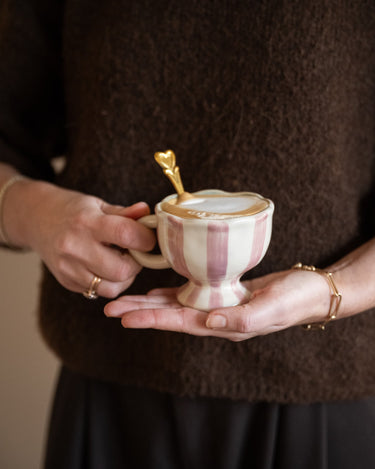 Bloomingville – Coffee Mug Willa Pink is a charming stoneware mug with a wavy rim and an elegant base. The soft pink and white stripes give the mug a playful, refined look that's perfect for a colorful breakfast or coffee break. It also looks beautiful displayed on an open shelf or dresser when not in use.