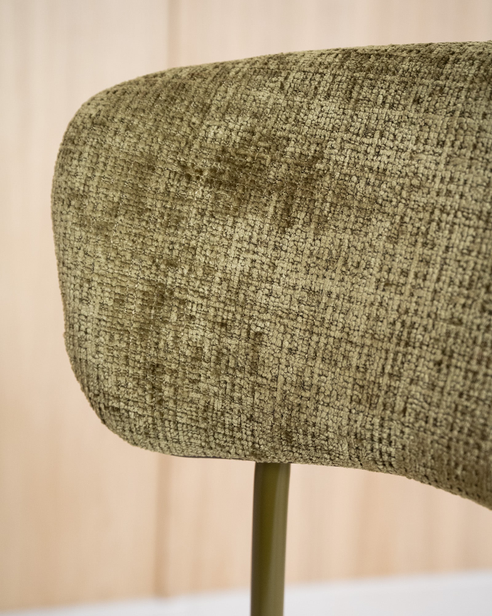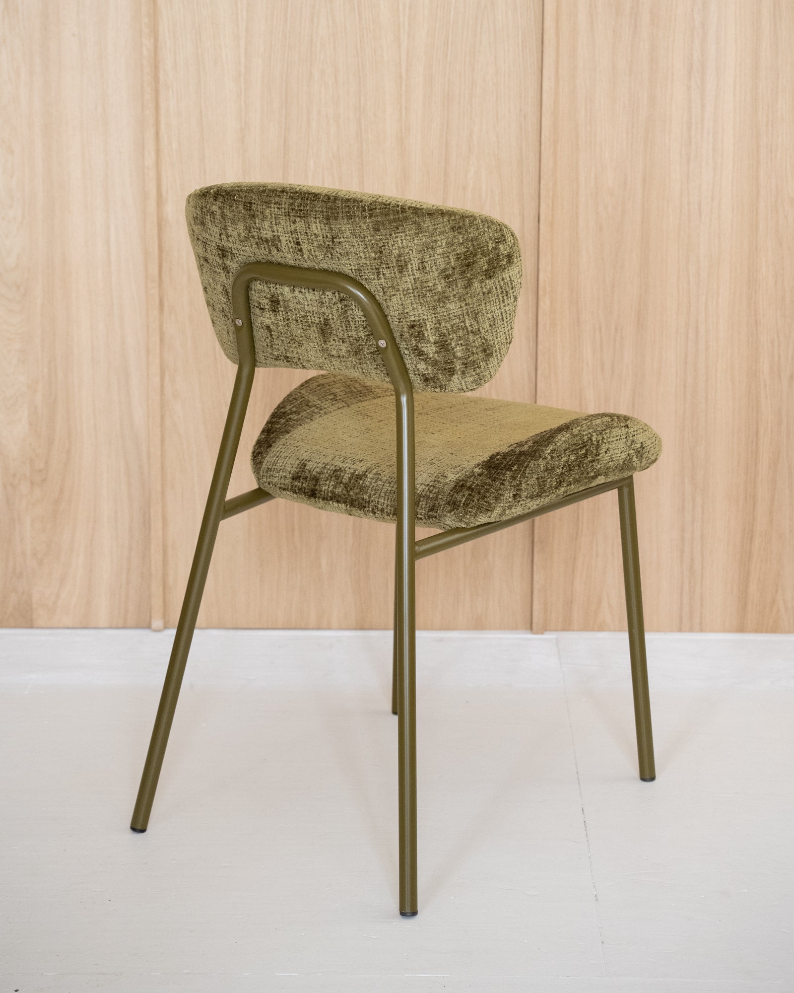 The Dare Olive Green Dining Chair is the perfect blend of comfort and style. The soft, olive green fabric gives the chair a luxurious look and feels warm and inviting. The sleek, color-coordinated metal frame creates an airy, modern look. Whether placed around the dining table or as a freestanding chair in the living room, the Dare Green Chair will instantly add character to your interior.