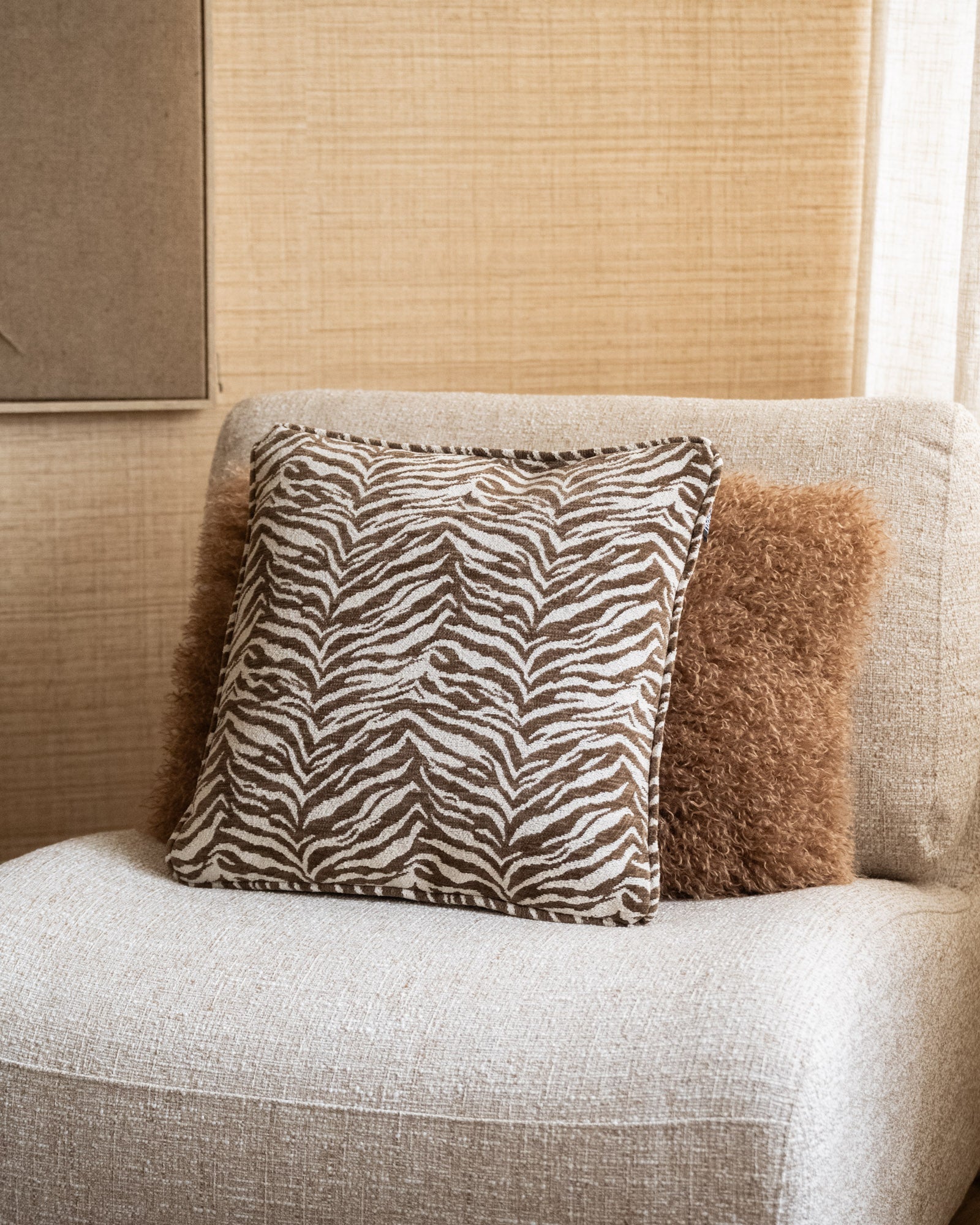 The Tigra Brown 45x45 cushion instantly adds a warm and playful touch to your interior thanks to its subtle tiger print in natural brown tones. This decorative cushion combines effortlessly with understated basics and other textures for a layered, cozy look on your sofa or armchair. Perfect for adding a touch of character to your seating area.