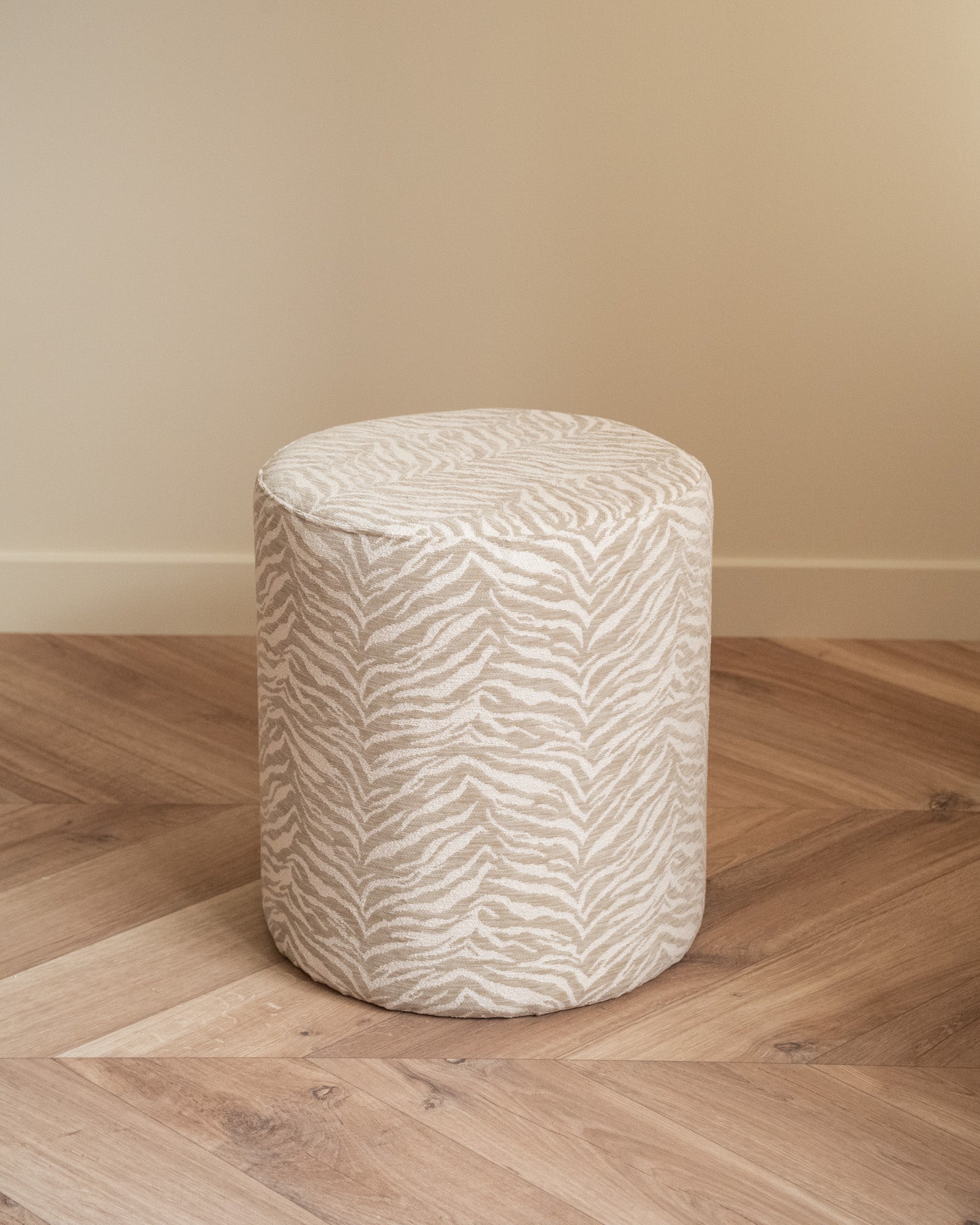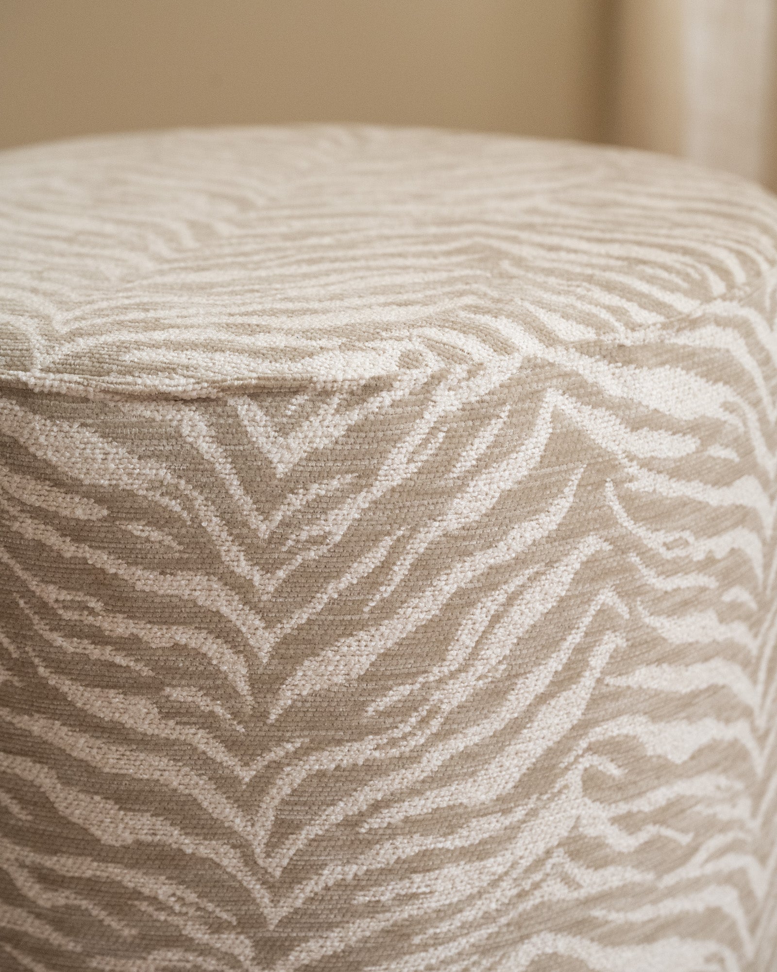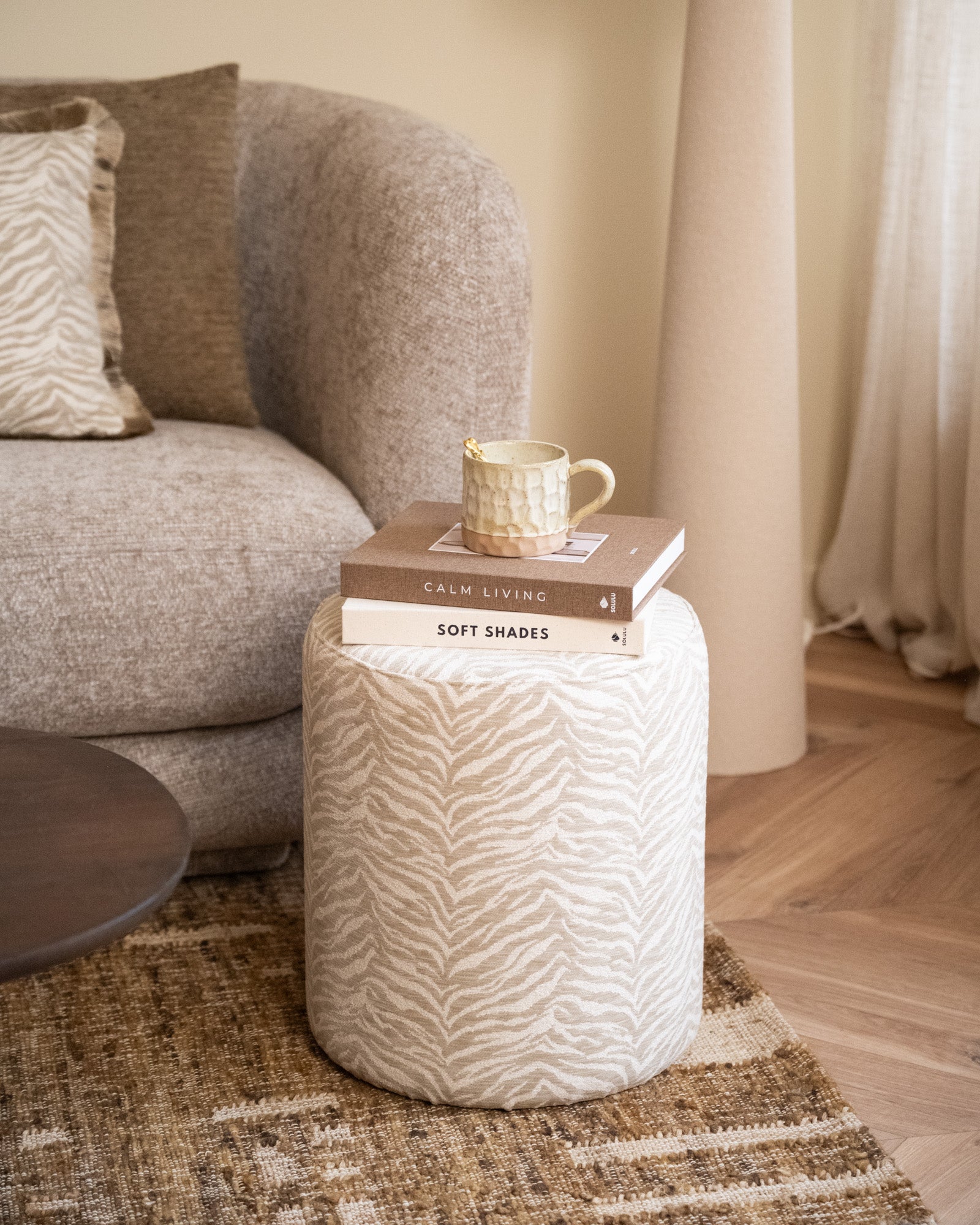 The Tigra Beige Pouf adds a playful, stylish touch to your interior with its subtle animal print and soft beige hue. This comfortable pouf is perfect as an extra seat, footstool, or simply a chic accent. A trendy must-have that will liven up any room!