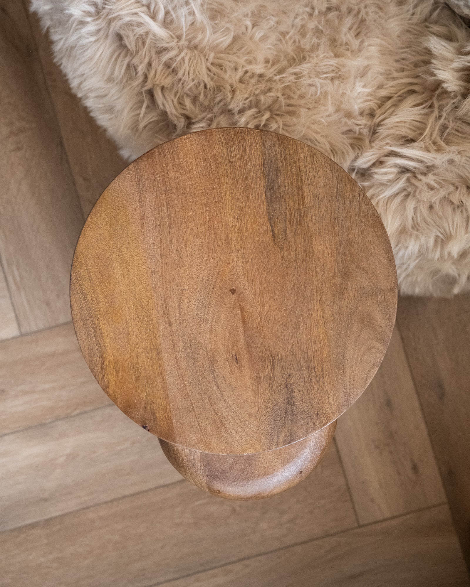 The Woomble Mango Wood side table is a true design favorite thanks to its playful, asymmetrical shape and warm mango wood finish. Its sculptural silhouette makes it perfect next to your sofa for a cup of tea, your favorite book, or a beautiful candle. Compact, characterful, and super stylish: a must-have for any modern living room!