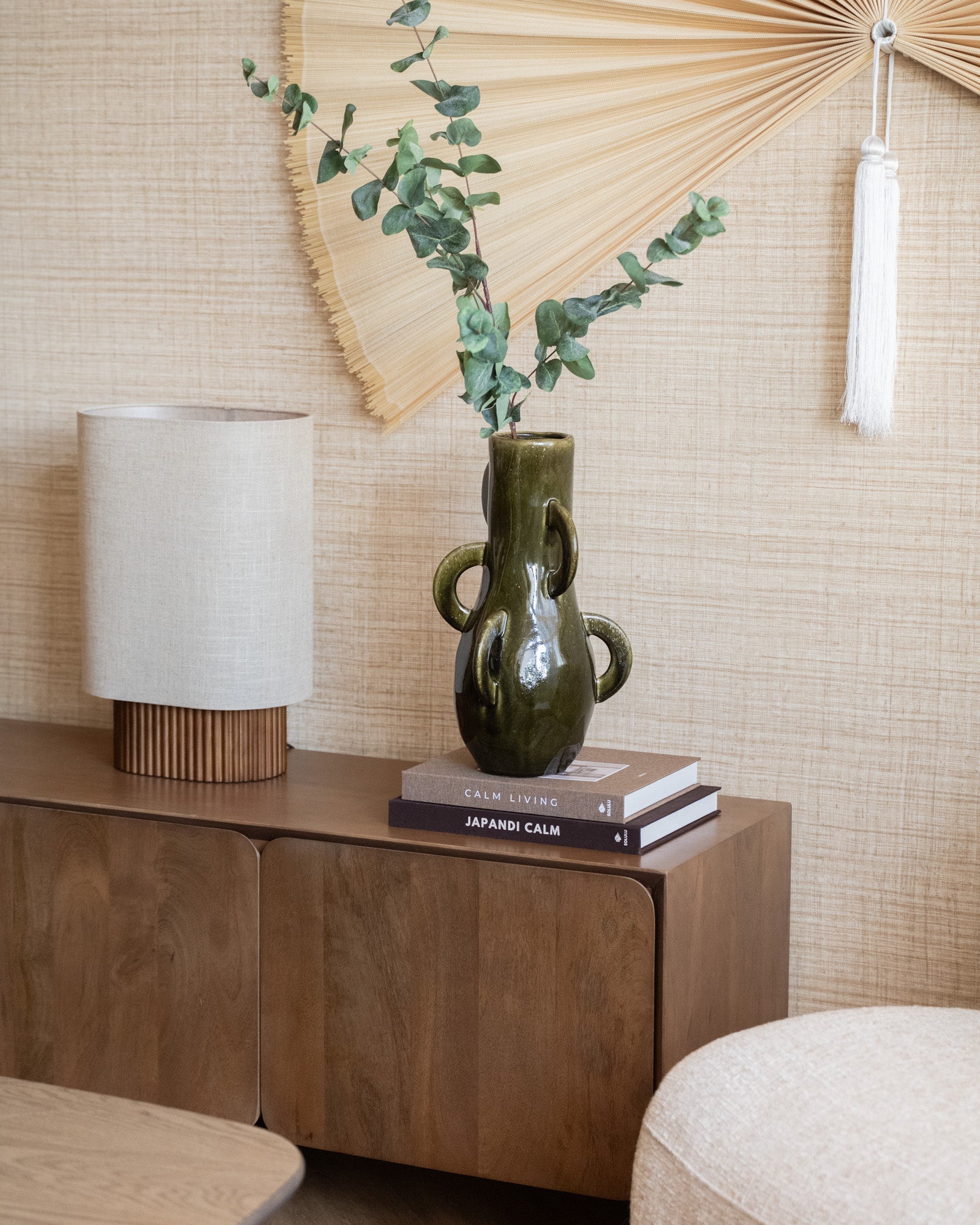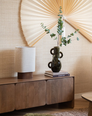 Add character and artistic flair to your interior with the Handmade Deco Vase Zaza Olive Green. This decorative vase, crafted in a rich olive green, stands out thanks to its playful handles and unique, handcrafted look that makes each vase unique. Perfect as a statement piece on a dresser, side table, or shelving unit, with or without flowers.