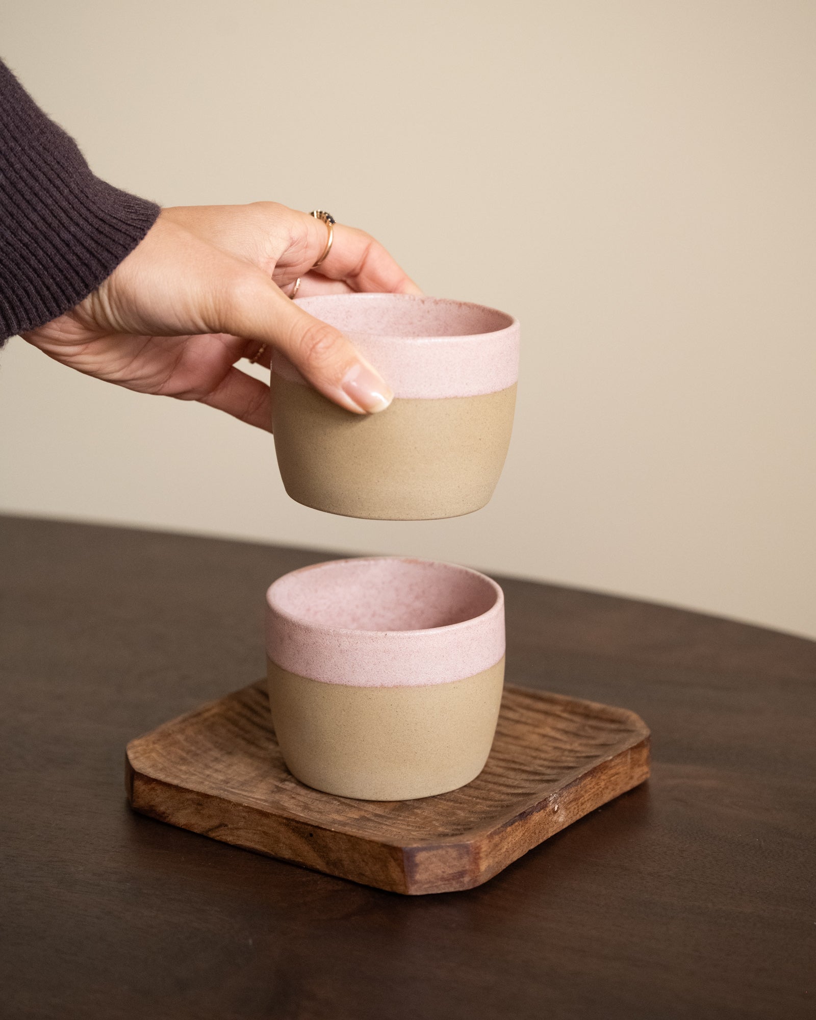 Enjoy your coffee in style with the Arenito Mauve Coffee Mug, made from sustainable Ecogres® with recycled clay and glazes. The combination of a soft sand-colored base and a warm mauve hue gives this coffee mug a calm, artisanal look.
