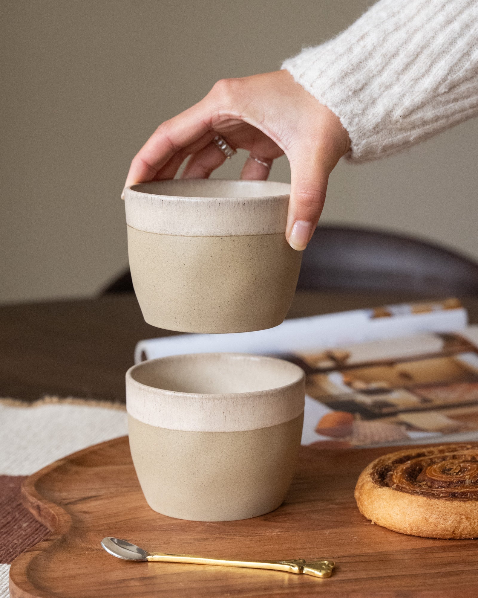 With its soft sand color and organic shape, the Arenito Sand Latte Mug is designed to make every coffee or tea moment special. Crafted from sustainable Ecogres stoneware, it's perfect for your favorite latte, tea, or chai.