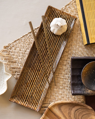 The Mino Craft Plate in brown combines Japanese craftsmanship with a modern look, perfect for serving sushi, dumplings, tapas or other tasty snacks in style.
