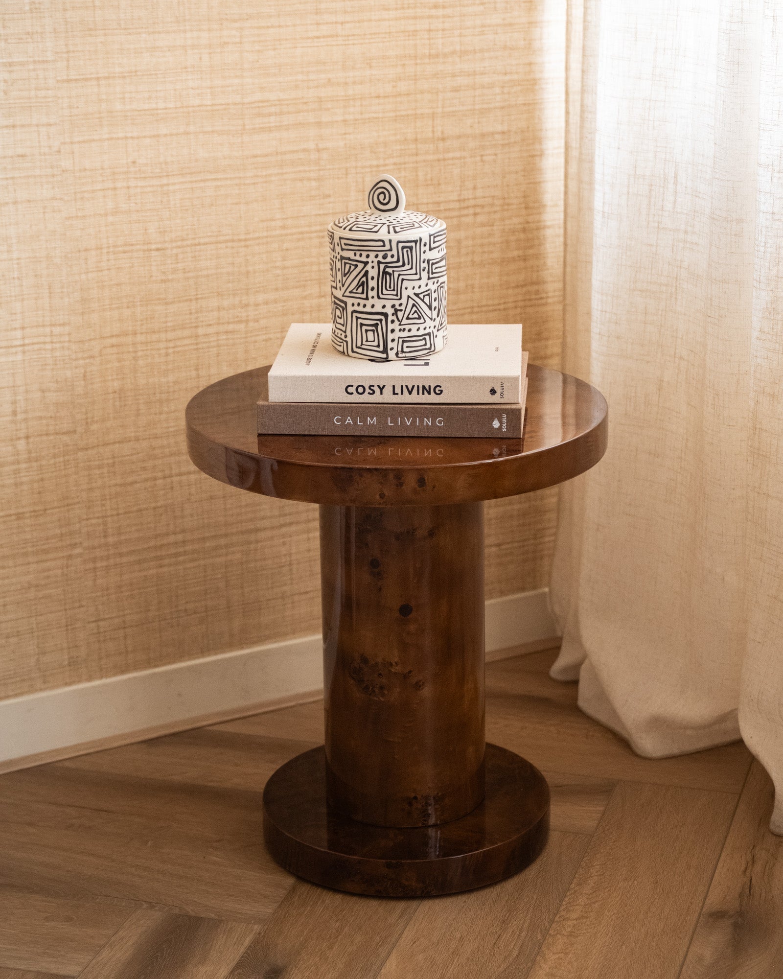 Bring the warm retro vibes of the '70s into your home with the Dutchbone Quinn side table in walnut veneer. The rounded shapes, high-gloss finish, and unique wood grain make this table a real eye-catcher. Perfect next to your sofa or armchair for a stylish, cozy atmosphere.