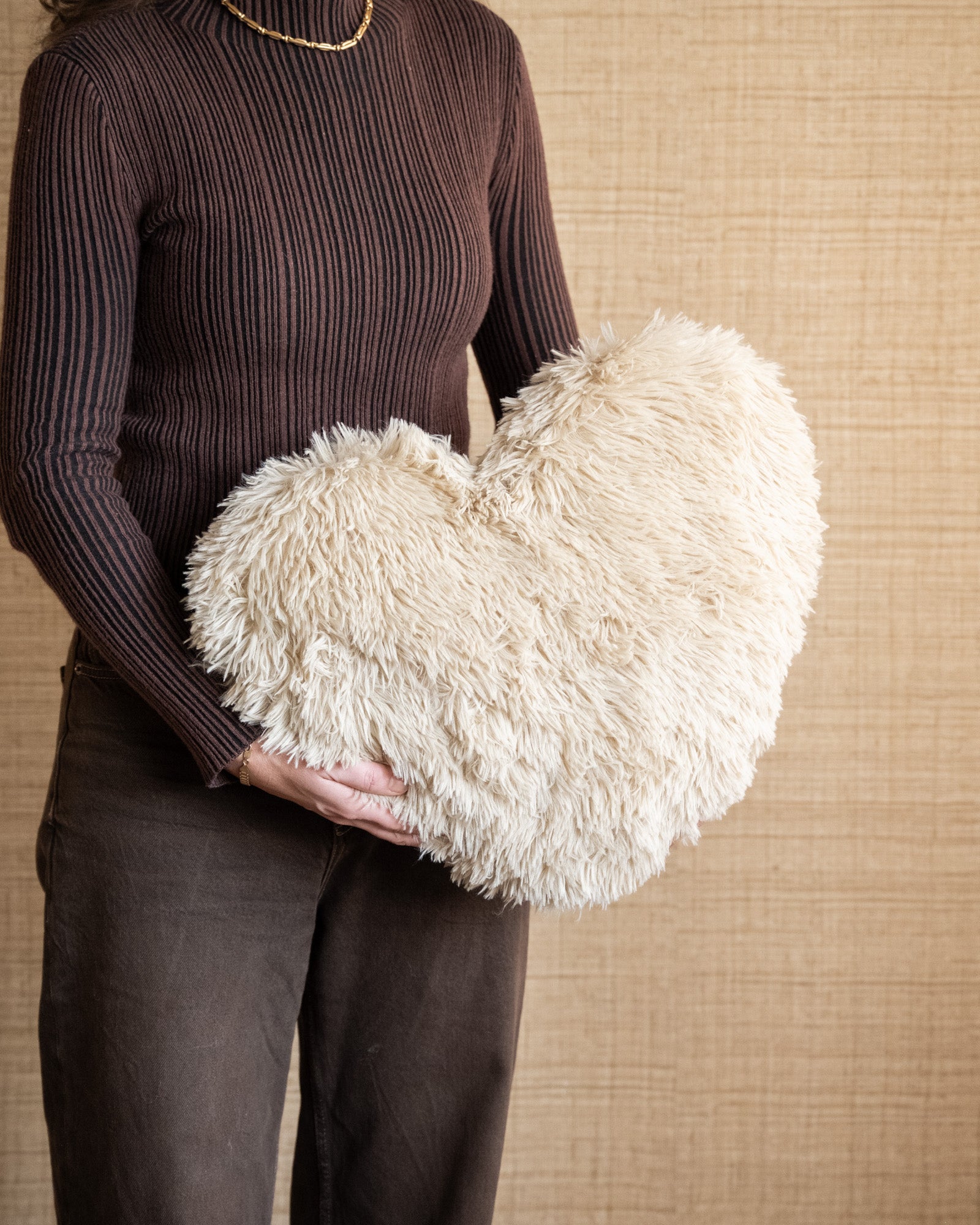 Cushion Heart Furry Beige