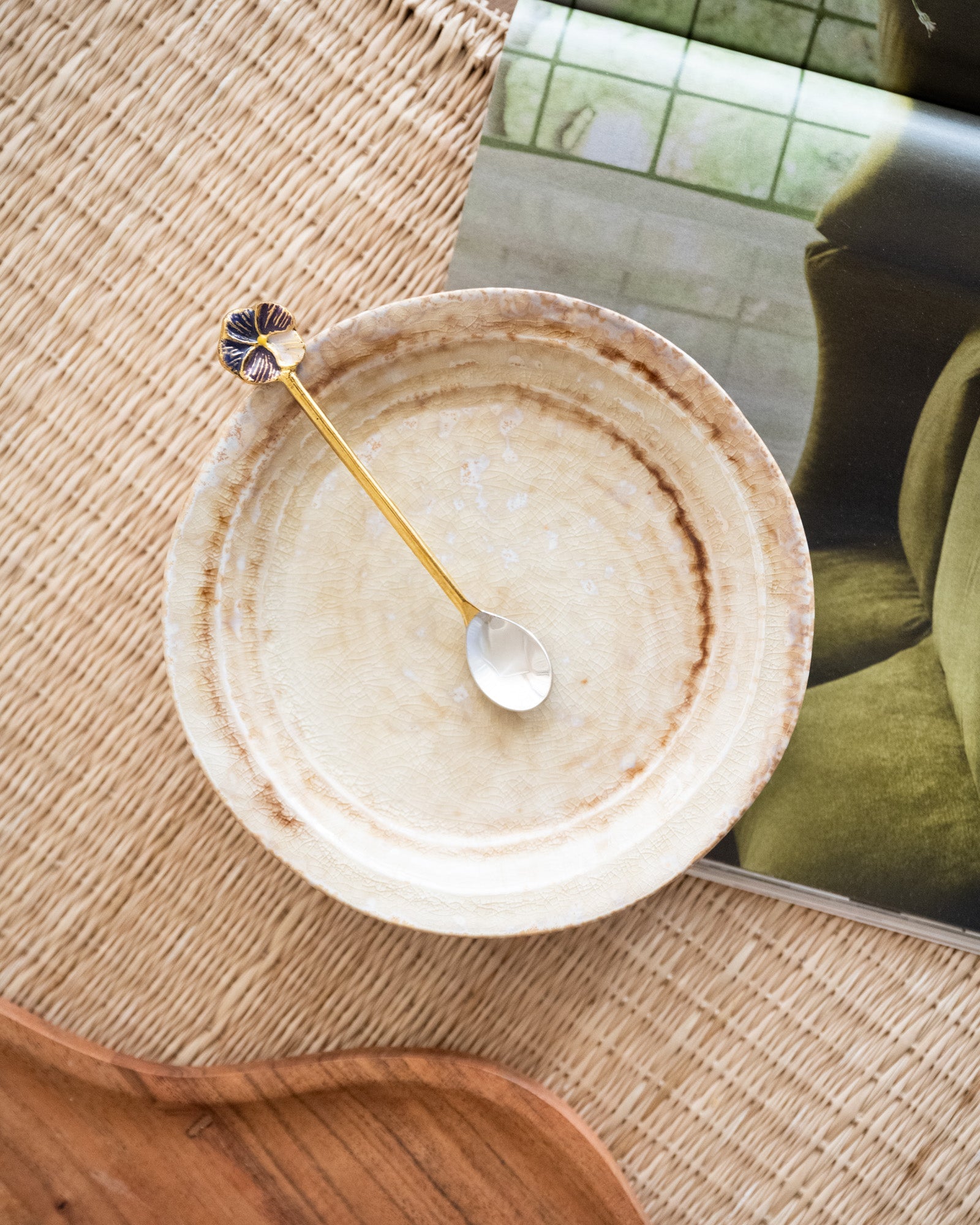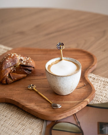 With this SET OF 2 – Handmade Teaspoon Valery Violet, you can add a subtle floral touch to any coffee moment. The gold spoons are finished with a delicate violet floral detail, adding just that little bit of extra charm to your table. Perfect for tea, coffee, or a small dessert.
