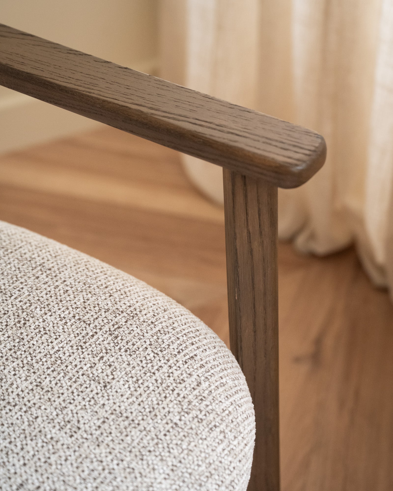 Combine style and comfort with the Udar Oak Wood Armchair. Thanks to its luxurious melange fabric and warm oak, this chair adds a modern and elegant touch to your interior. The minimalist design perfectly complements a Japandi style.