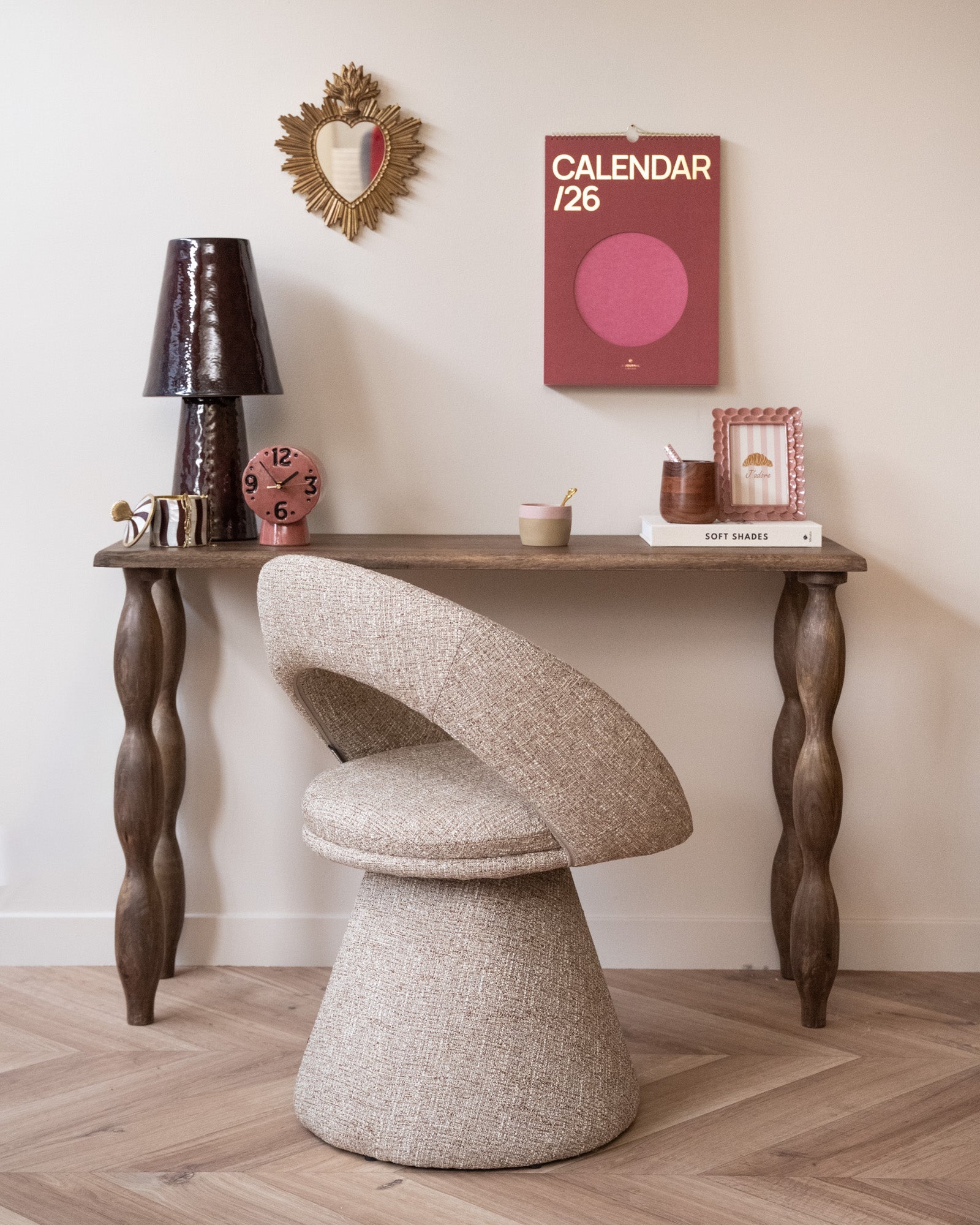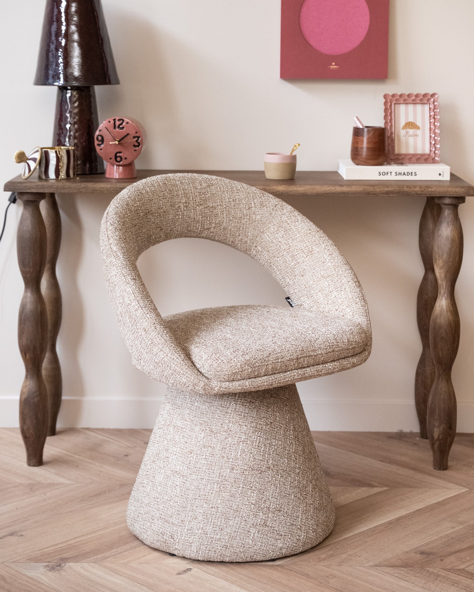 The Swivel Dining Chair Natural Melange is a comfortable swivel chair with soft upholstery and a warm, natural look. Thanks to its swivel base, it's perfect for both the dining table and a desk. A stylish and versatile chair for everyday use.