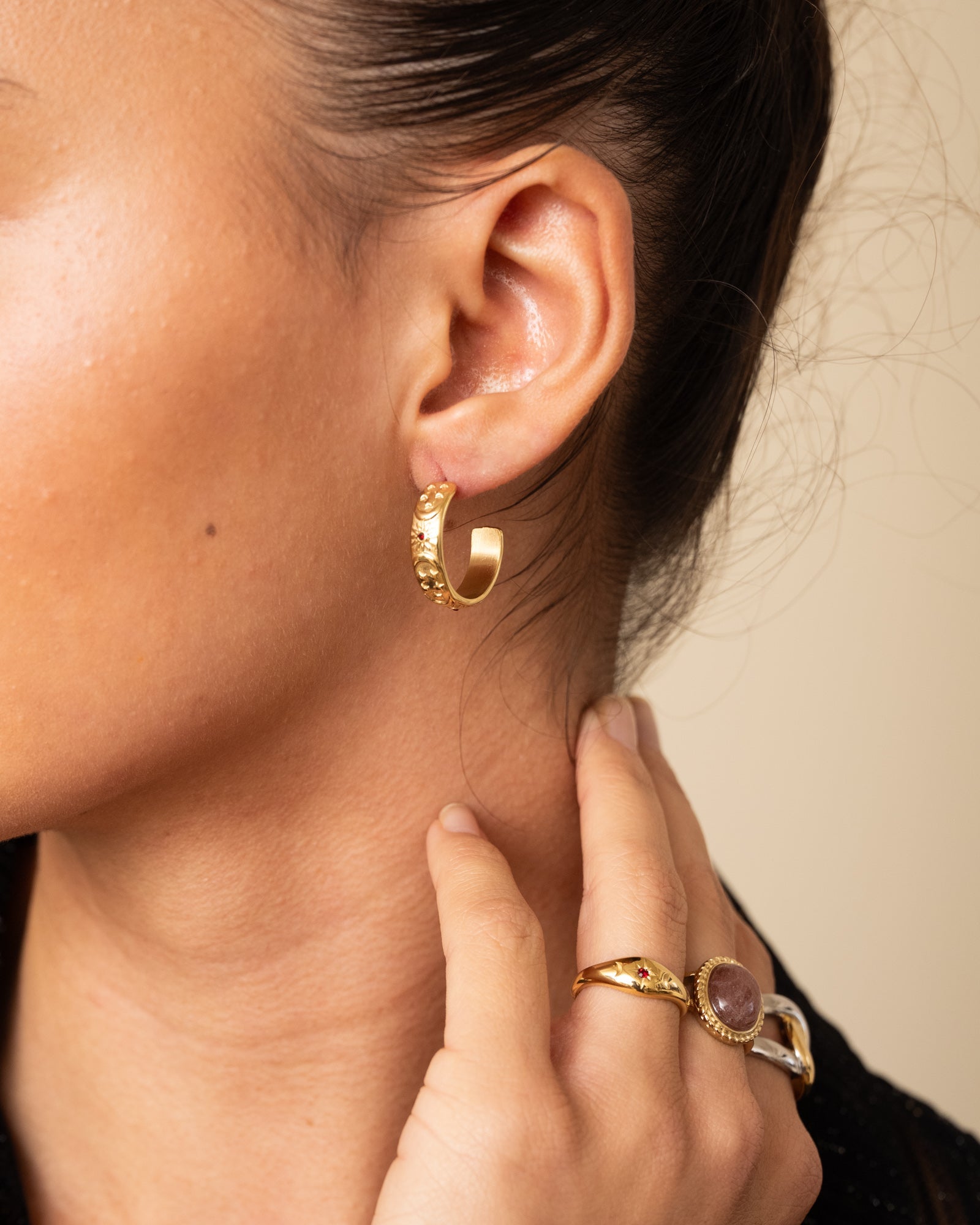 Vintage gold ring with Berry Quartz gemstone for inner strength and protection.
