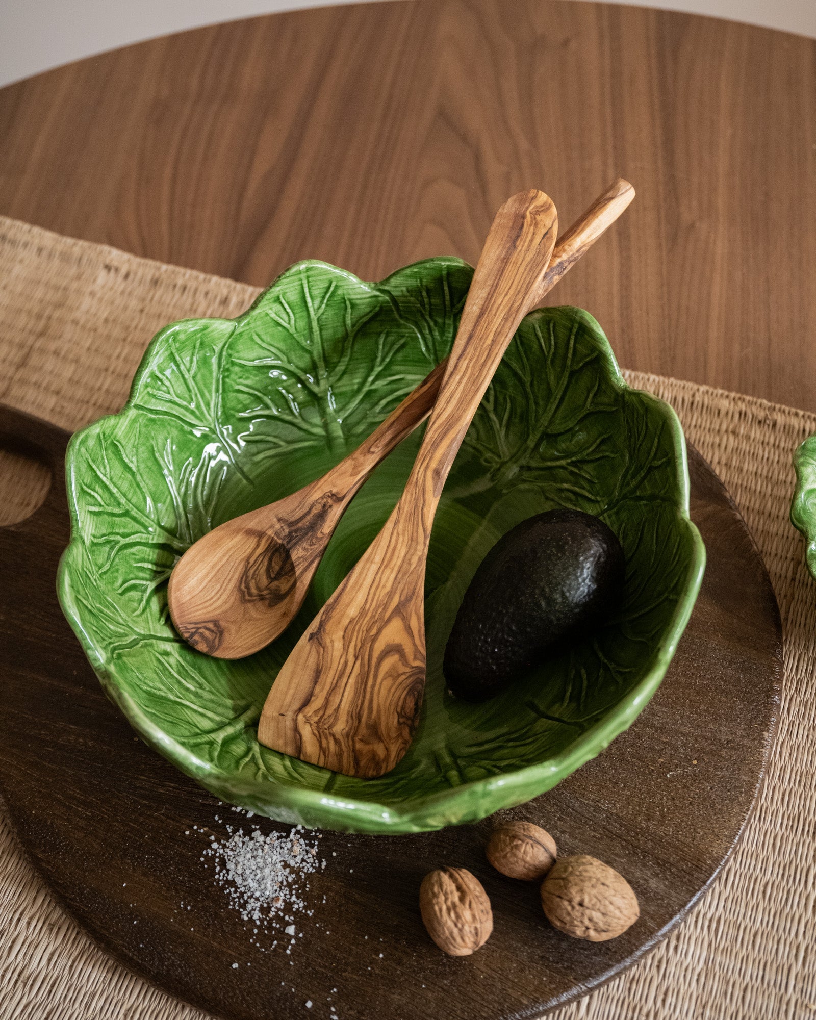 Make cooking even more fun and atmospheric with this set of 2 olive wood kitchen spoons. The natural olive wood gives each spoon a unique grain and a warm, elegant look. Perfect for stirring, scooping, or serving while preparing your favorite dishes.