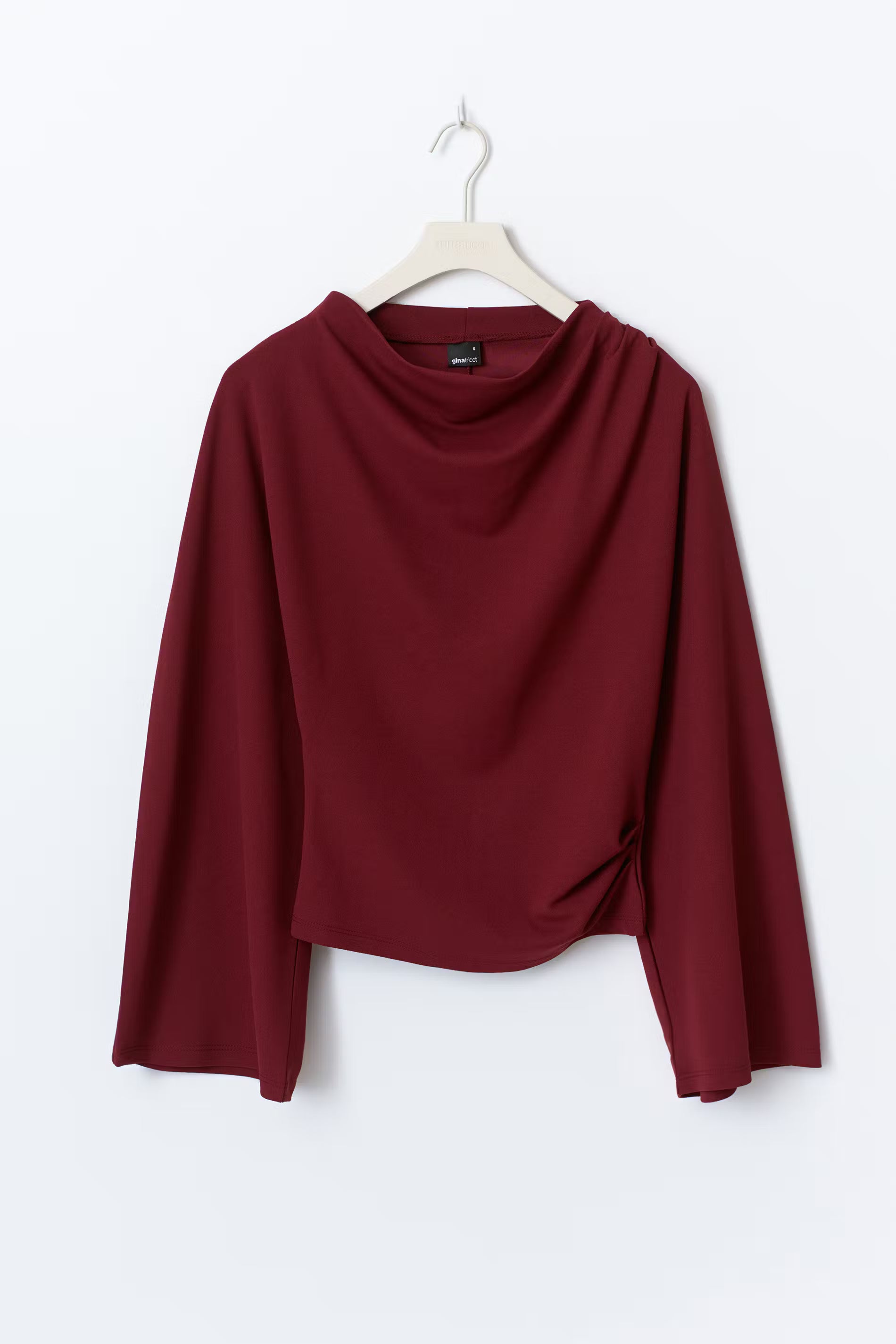 | Details | Flare sleeves, Draped neckline, Long sleeves |