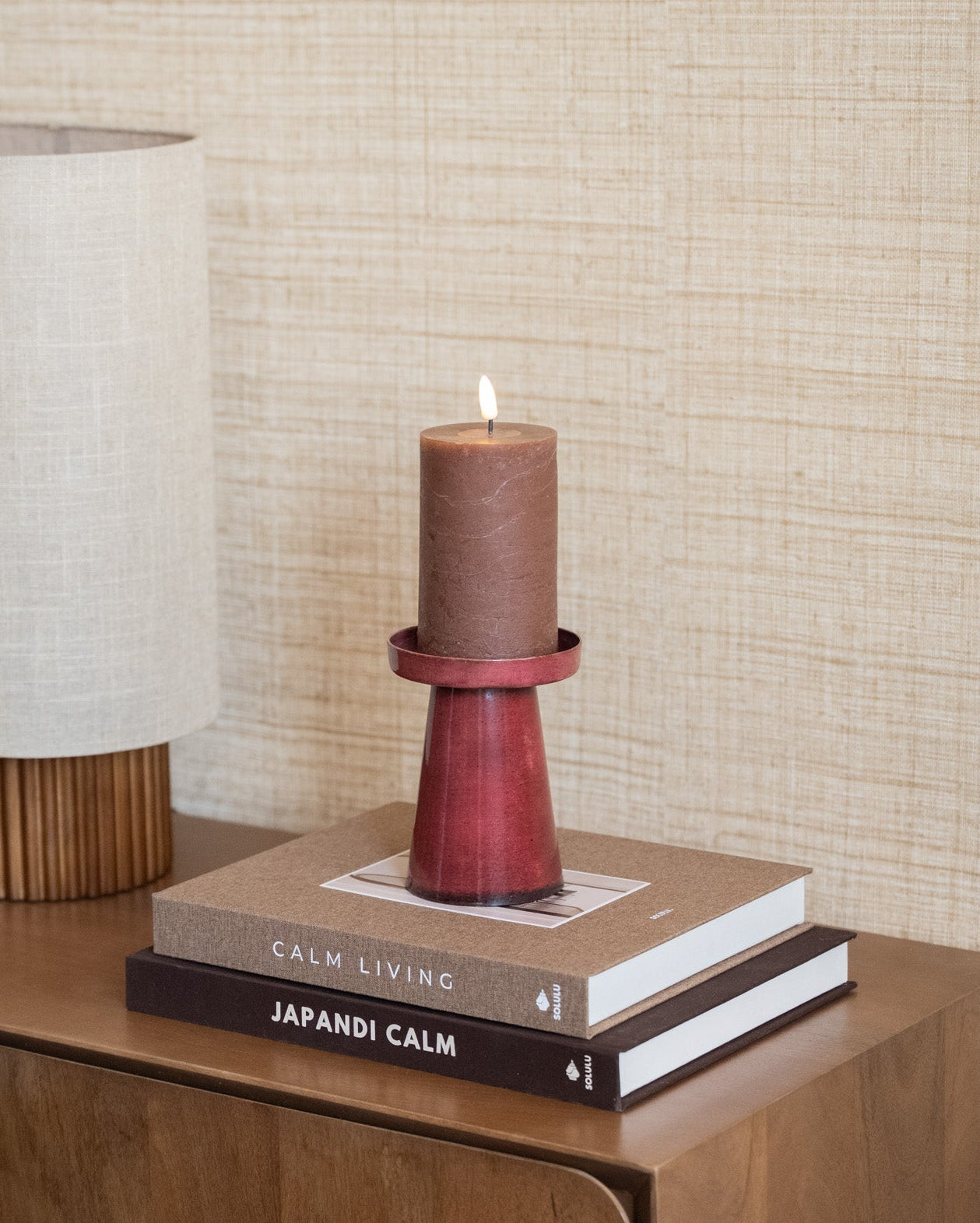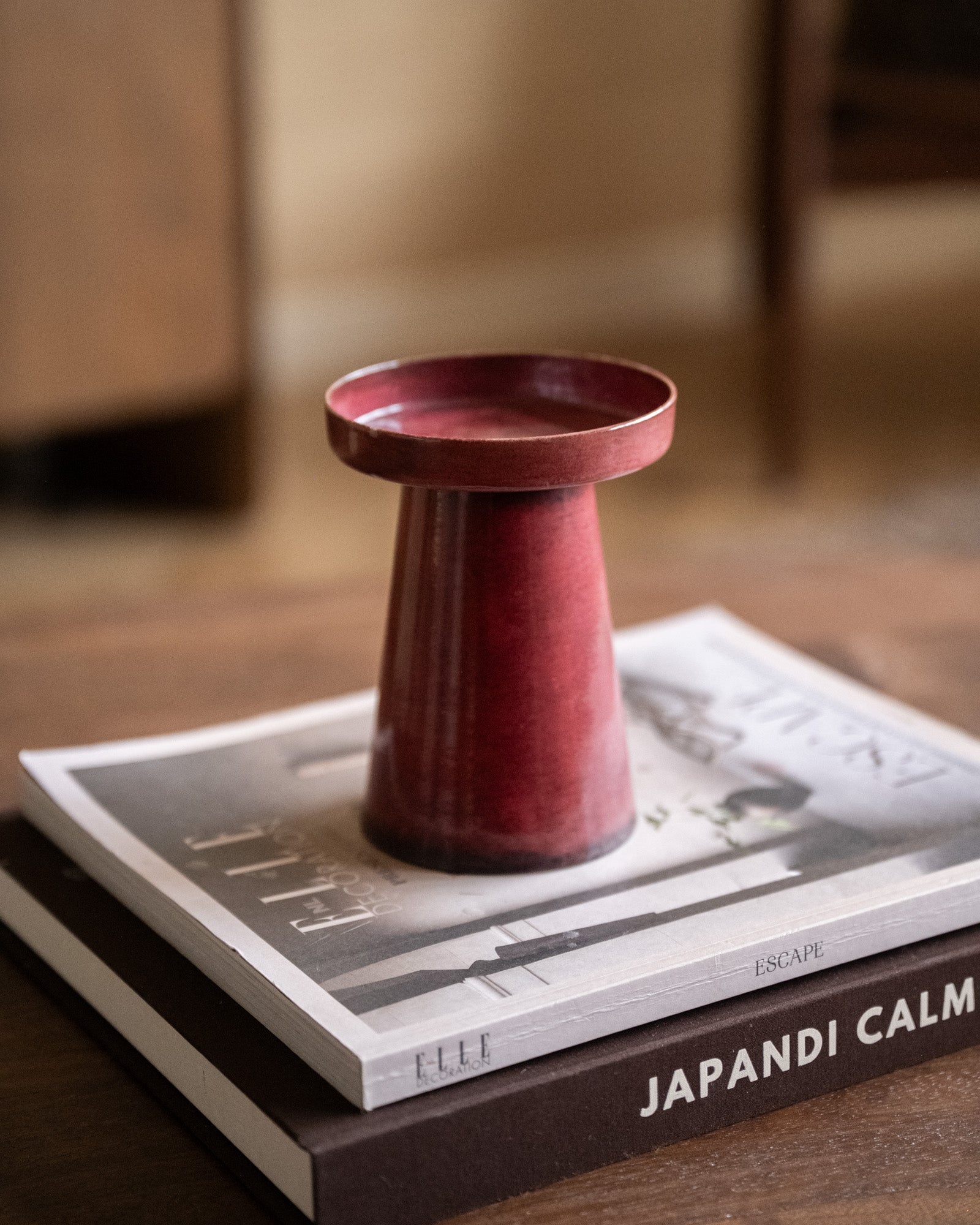 The Tealight Holder Metal Burgundy instantly brings warmth and ambiance to your interior. The deep burgundy color combined with the polished metal creates a luxurious, cozy look. It's perfect as a focal point on a coffee table, sideboard, or shelving unit, and pairs beautifully with other candleholders for added ambiance.