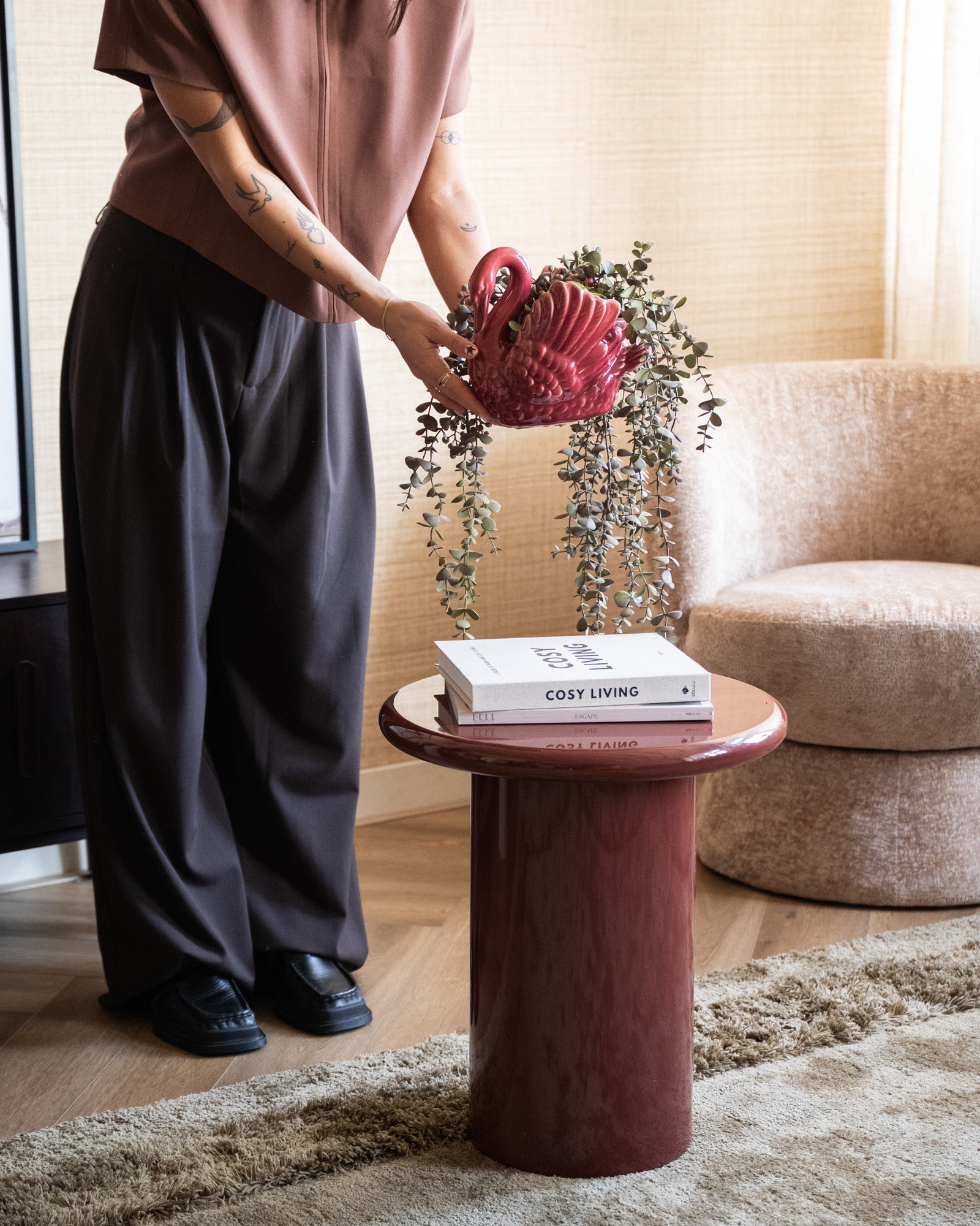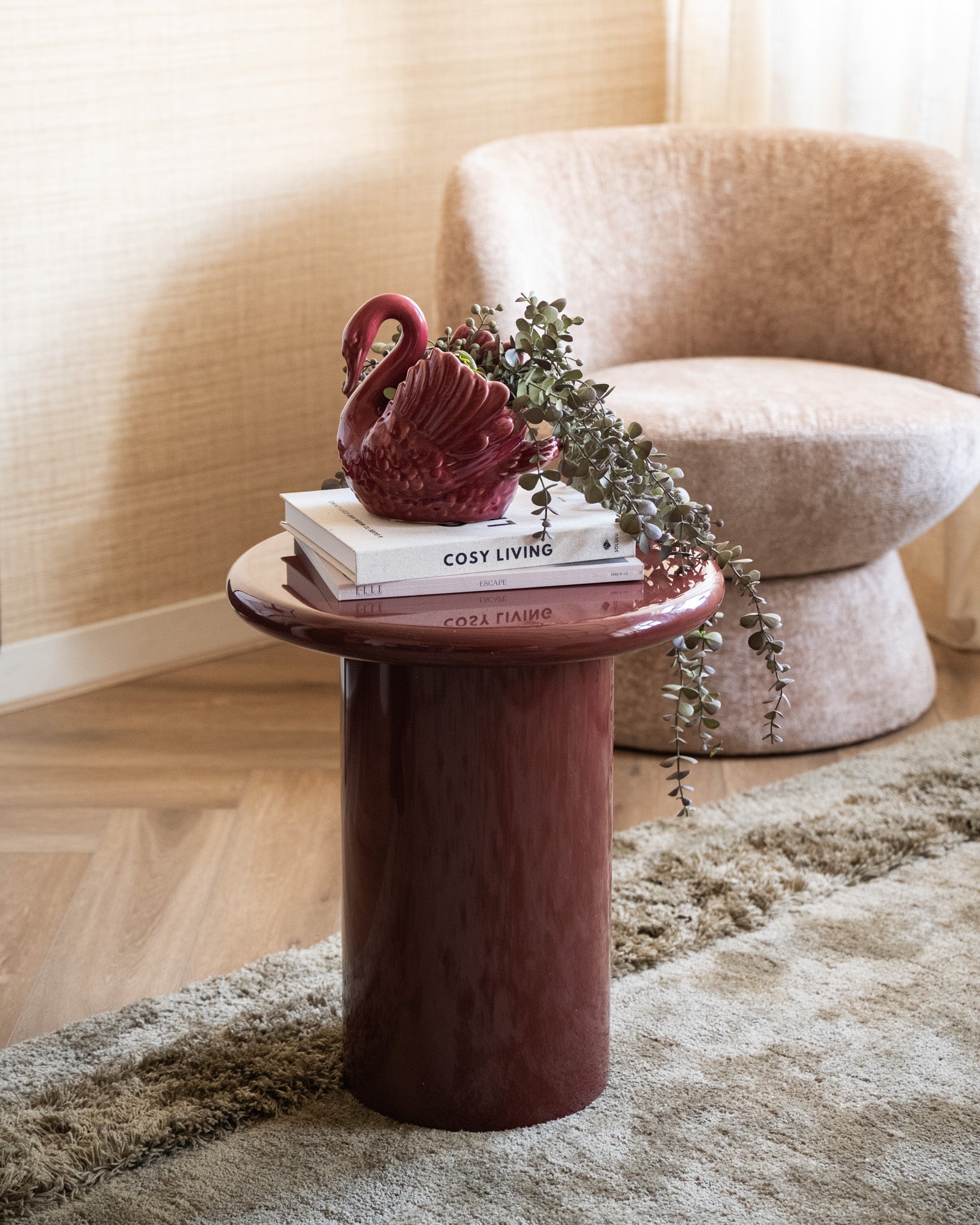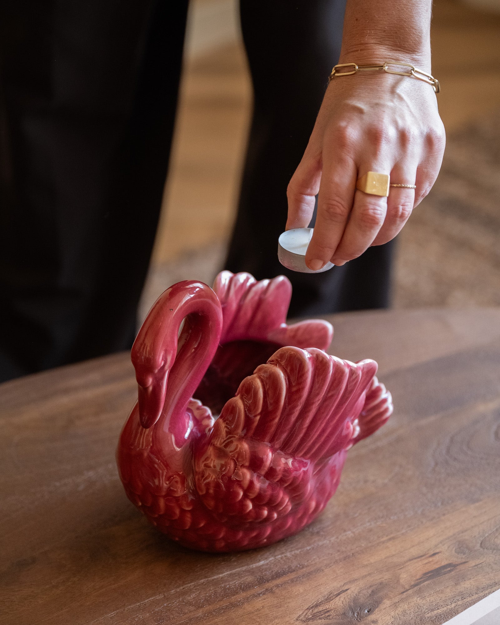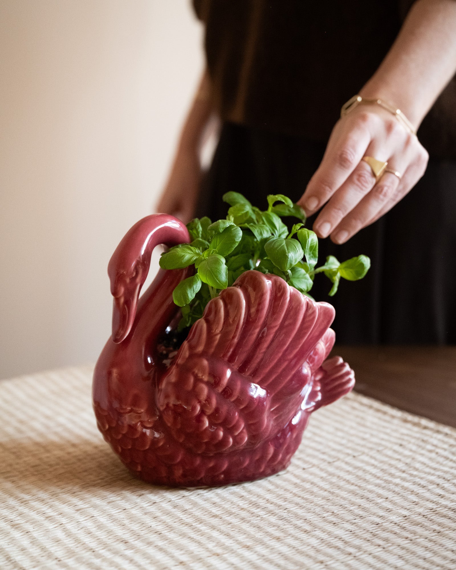 The Deco Planter Swan Burgundy is a striking ceramic decorative piece with an elegant swan shape and a deep burgundy sheen. Use it as a statement piece or as a stylish planter for a small plant or herb, such as basil in the kitchen. A real eye-catcher that adds warmth and character to your interior. 🦢🌿