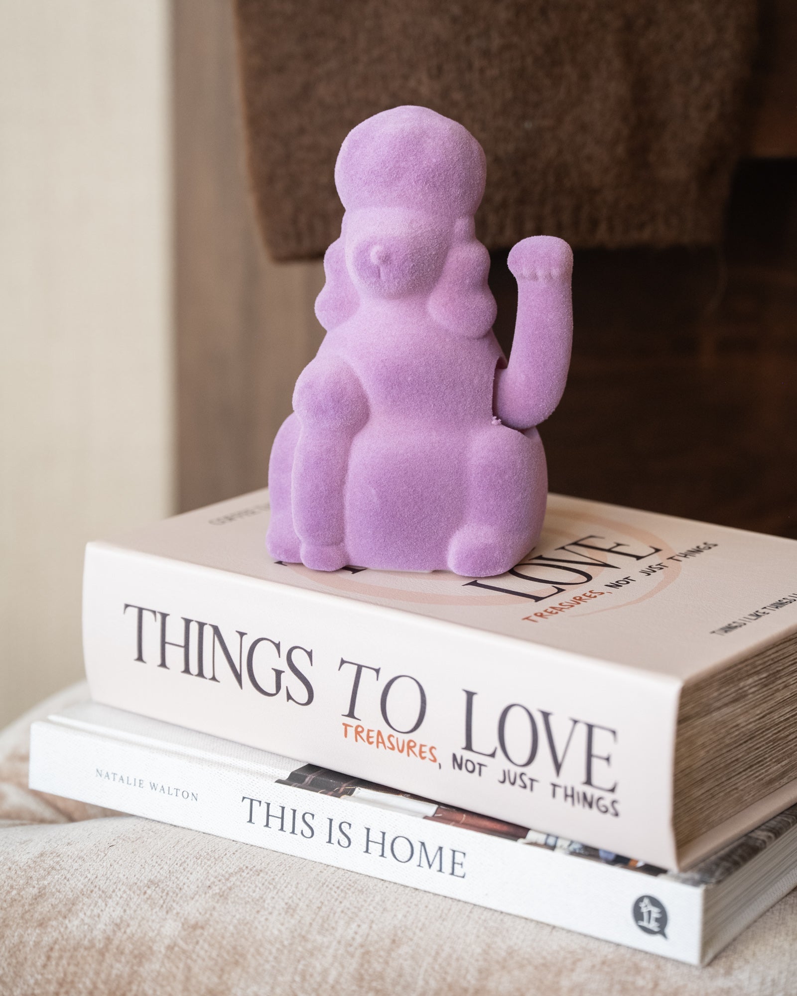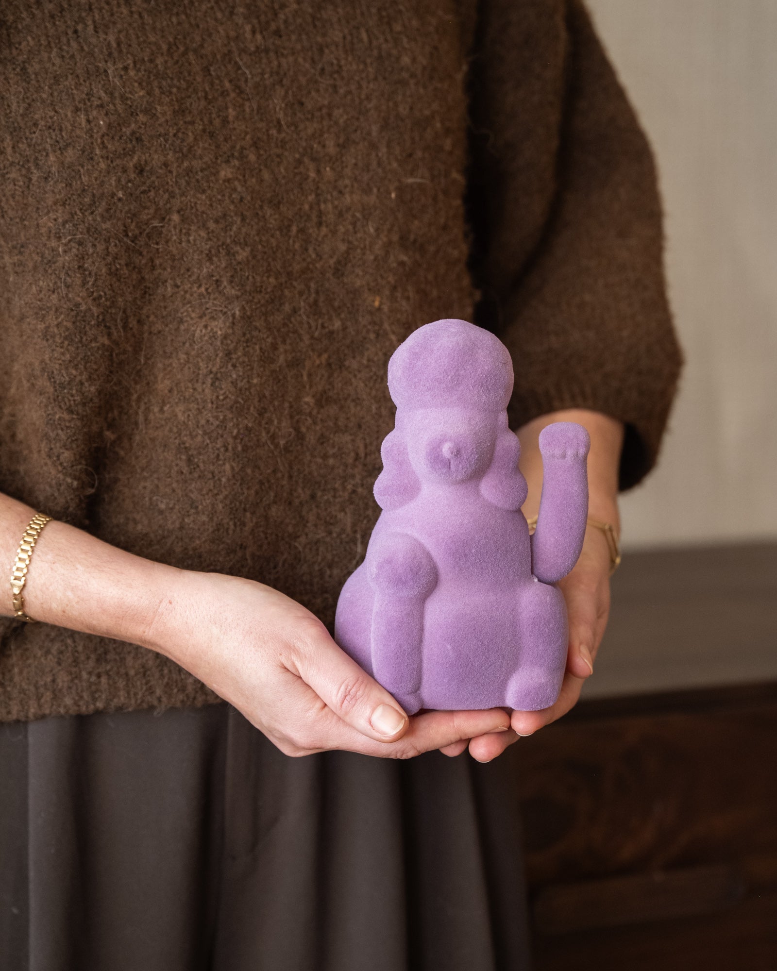 This playful purple ornament is a real eye-catcher for your interior. The Lucky Poodle has a velvety finish and a movable arm that swings cheerfully back and forth, perfect for adding a playful and unique touch to your interior. It looks great on a stack of coffee table books, a cabinet, or a sideboard.