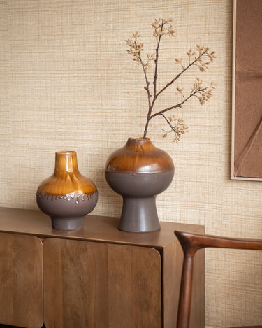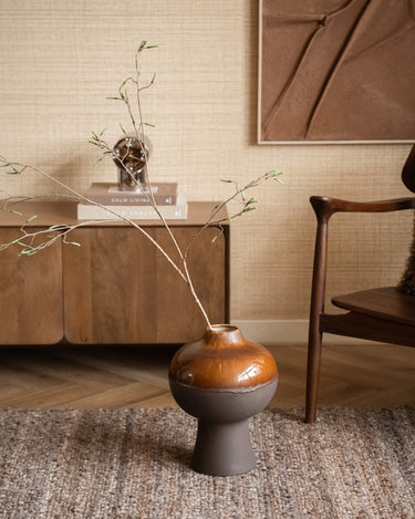The Large Deco Vase Drip Brown is a statement vase with a unique drip glaze finish in warm brown tones. The organic shape and glossy glaze give this ceramic vase a handcrafted, luxurious look. Beautiful with a single stem, dried flowers, or as a decorative object on its own.