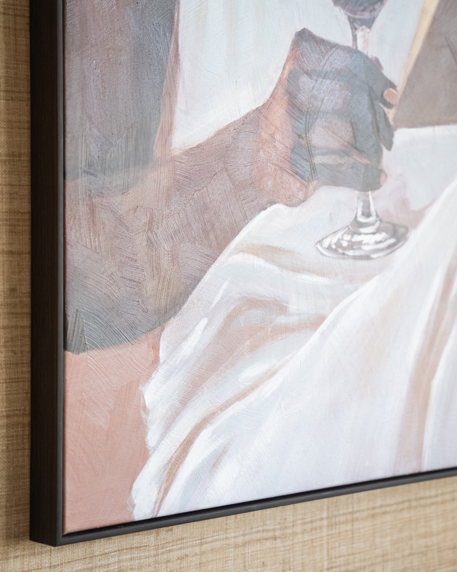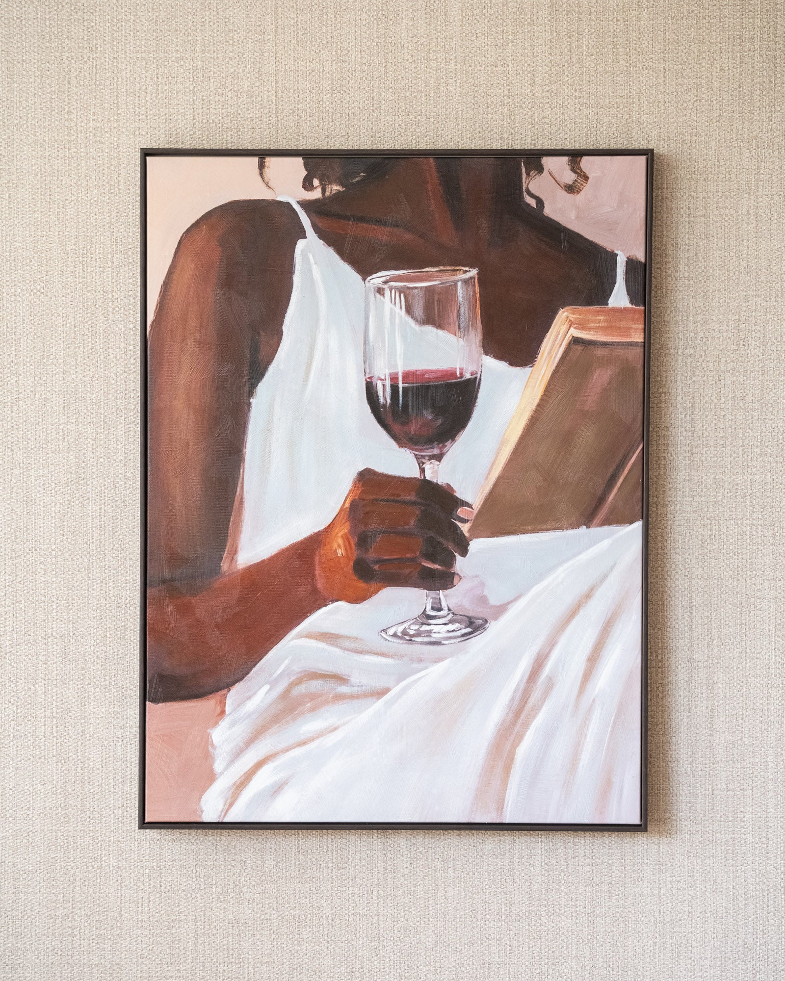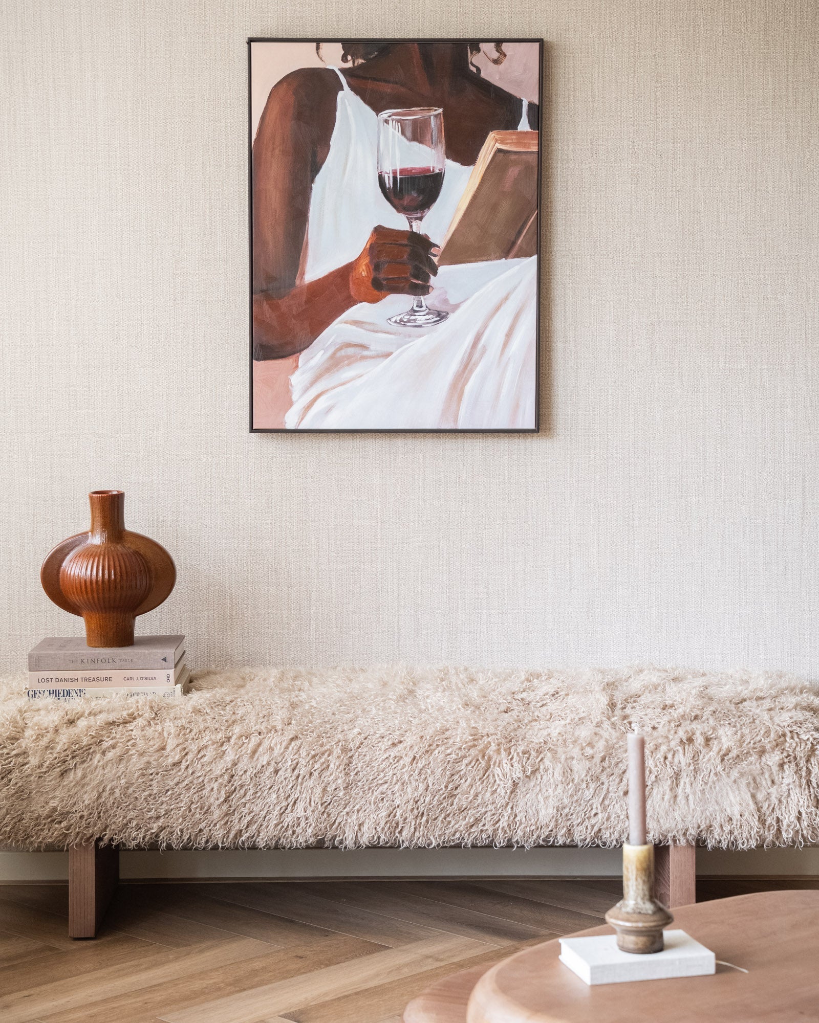 An ode to life's little moments of joy: a good book, a glass of wine, and a moment for yourself. This stylish wall decoration exudes tranquility, elegance, and strength and fits beautifully into both modern and warm interiors.