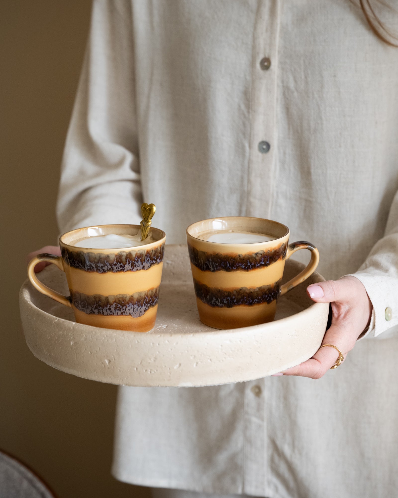 Inspired by rugged coastlines and iconic 70s ceramics, the HKLIVING Cappuccino Mug Cliffs brings a touch of nature to your coffee moment. The earthy tones and organic finish make every sip an experience. Perfect for those who love simplicity with character!