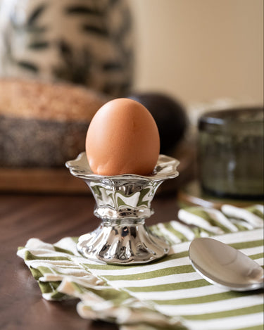 Breakfast in style. The HKLIVING Egg Cups Chrome give your breakfast table a modern, polished twist. This set of four egg cups is made of ceramic and finished with a striking chrome glaze. Timeless in design, yet with a contemporary look, perfect for adding that special touch to your table setting.