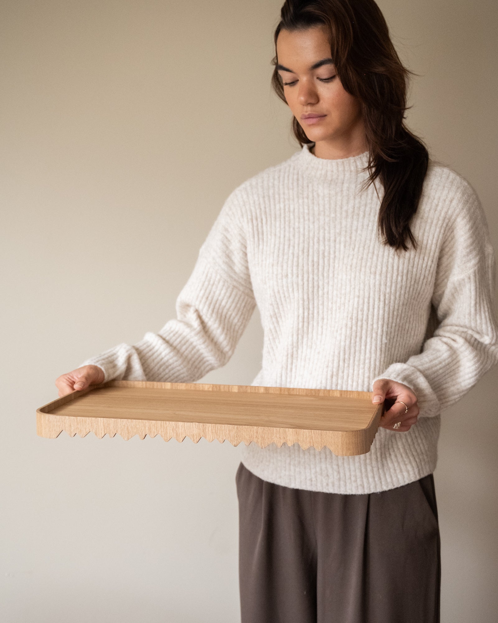 Bring natural warmth into your home with the HKLIVING Serving Tray Natural Wood. This stylish wooden serving tray with subtly wavy edges is perfect for presenting drinks, breakfast, or decorations. Available in small and medium, it's ideal for everyday use. Perfect for a Japandi interior.