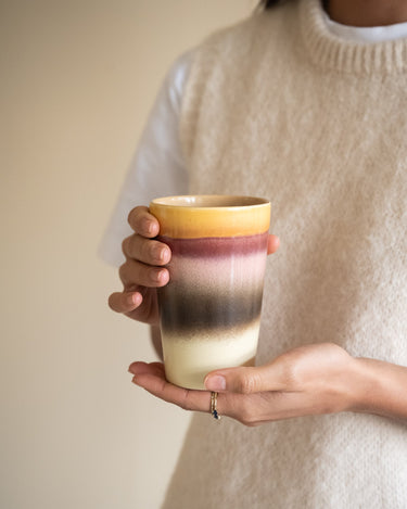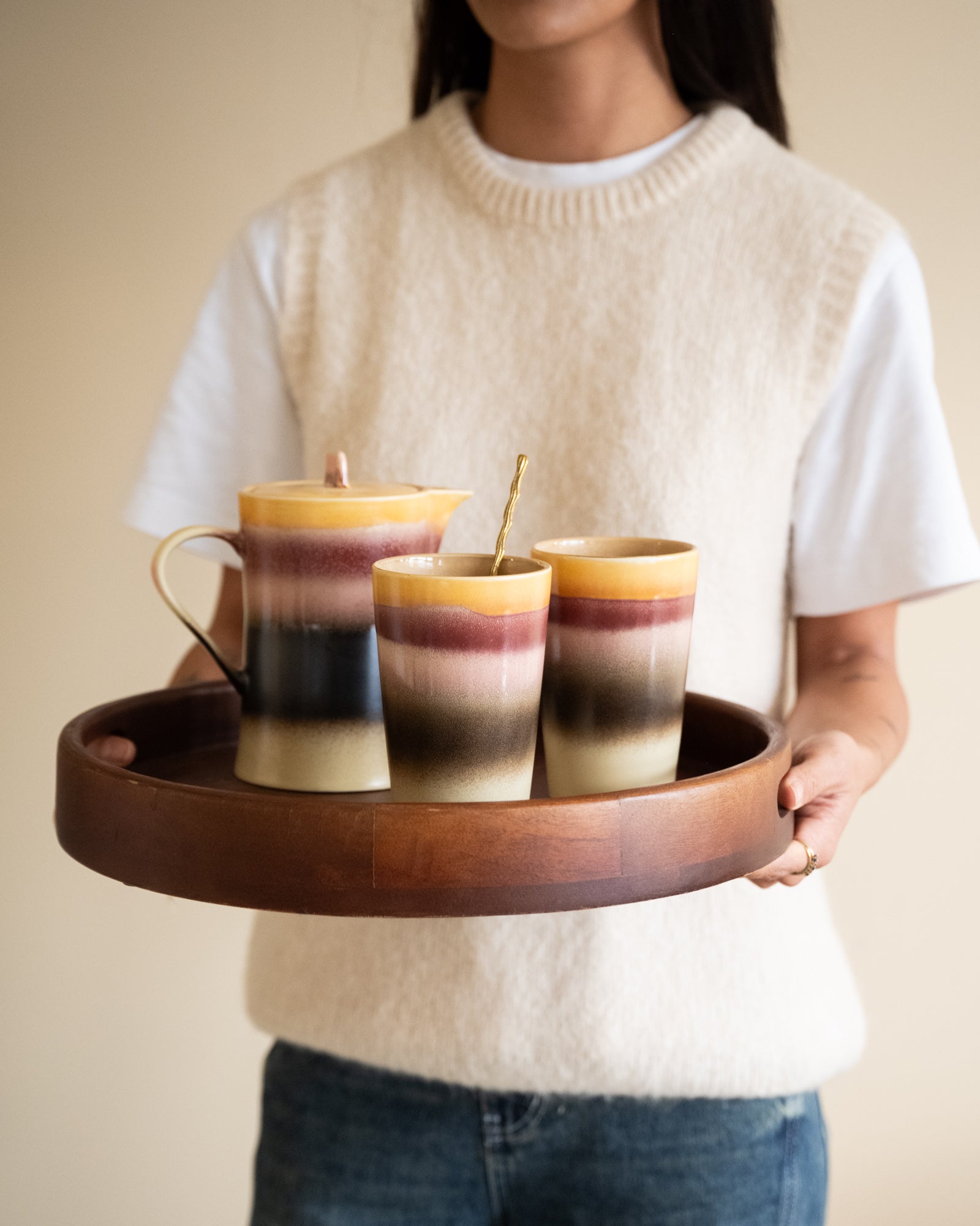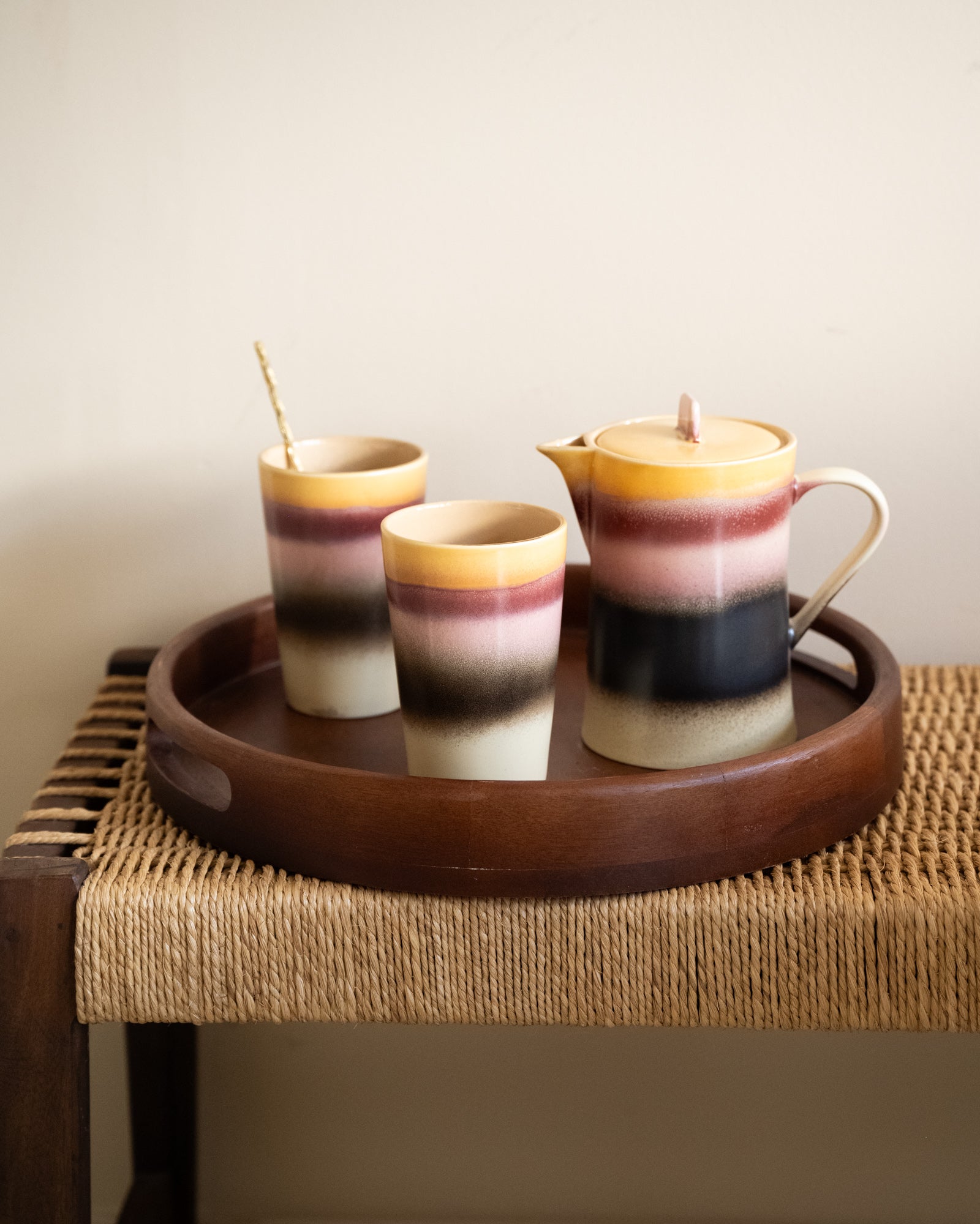 Nostalgic seventies vibes with a modern twist! The warm, layered tones are reminiscent of a sunset on a rugged coastline. Perfect for your relaxing moment with a cup of tea, coffee or matcha. A must-have for lovers of retro design and pure simplicity!