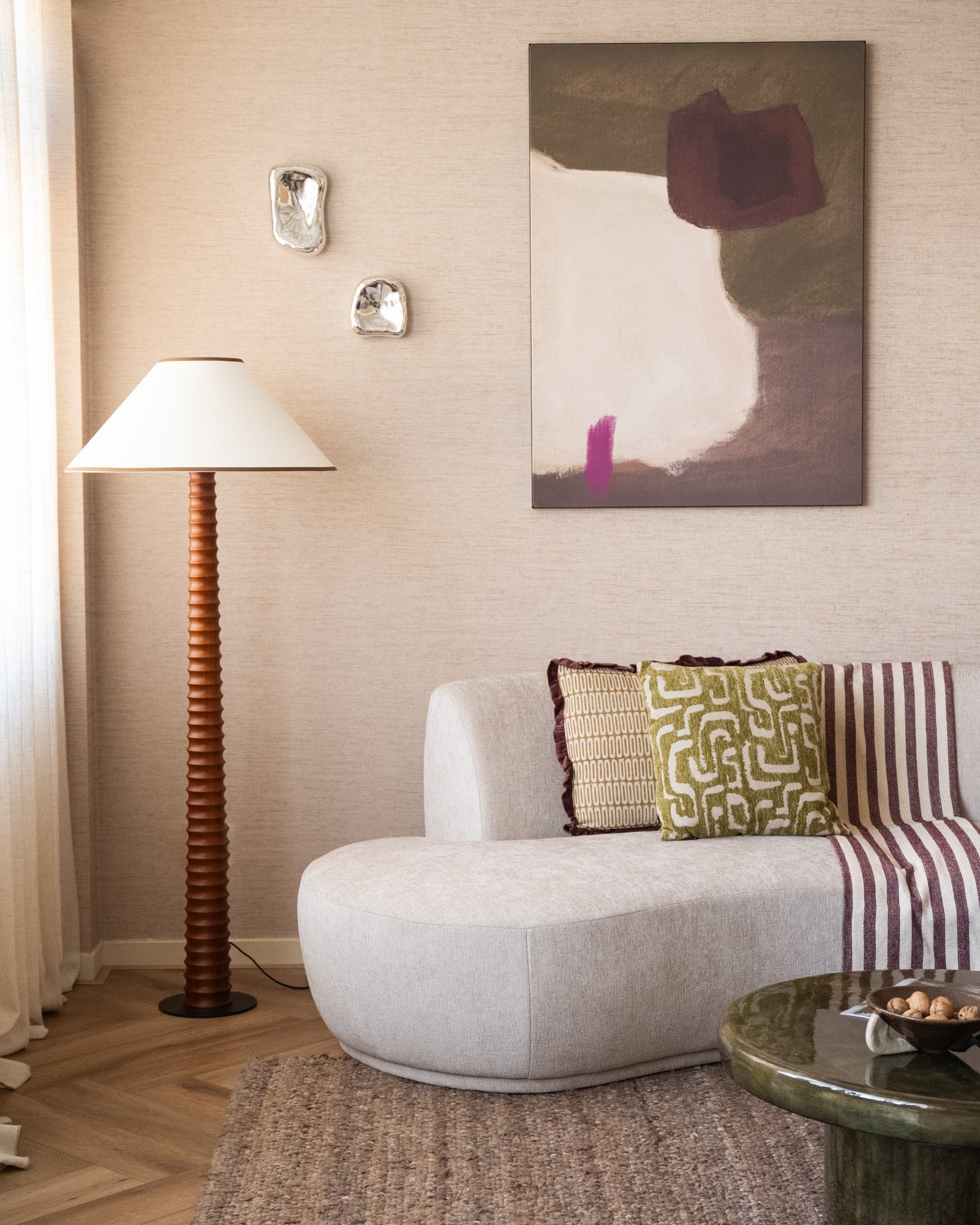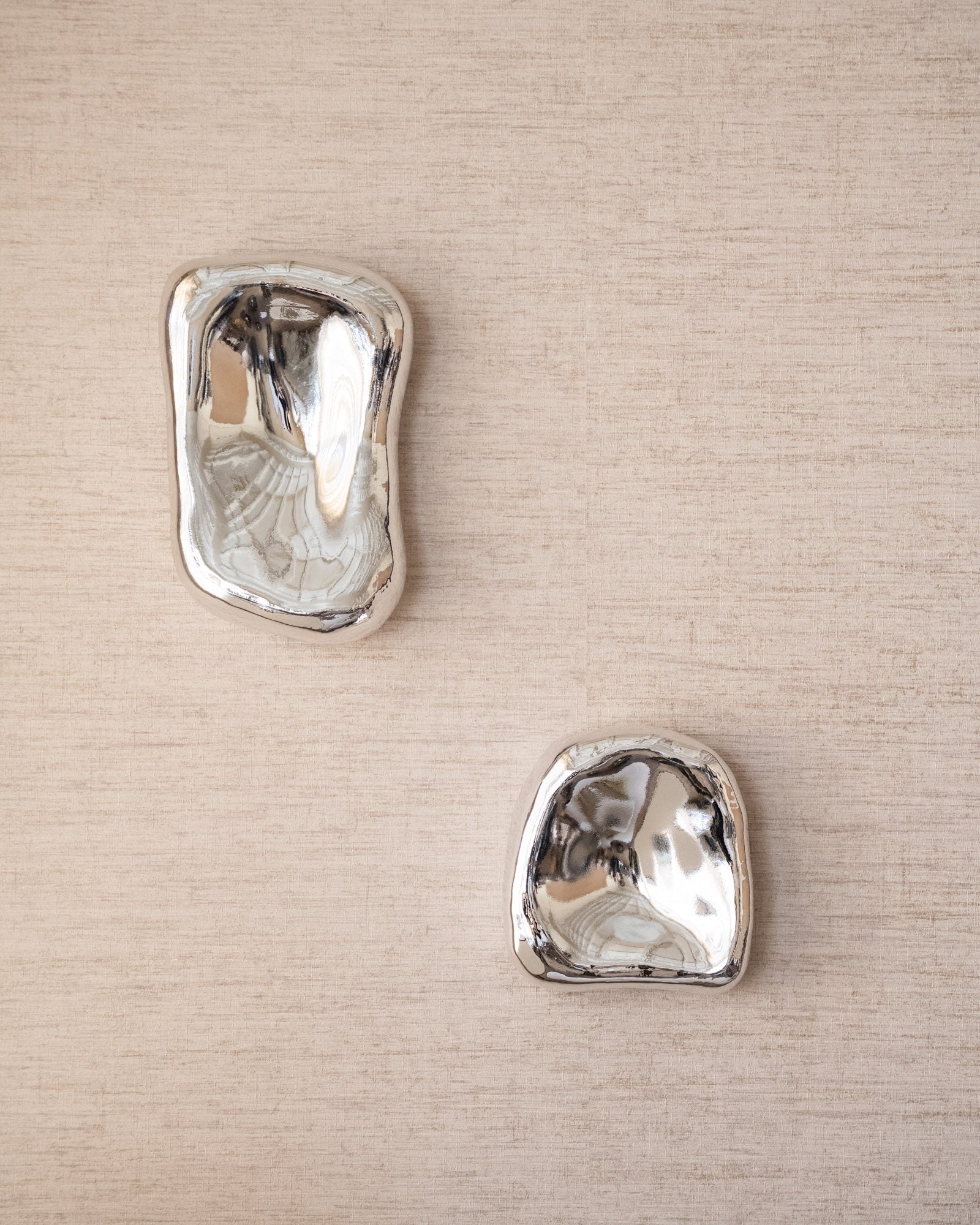 The HKLIVING Wall Ornament Chrome is a striking wall piece with a glossy chrome finish and an organic, sculptural shape. Its reflective surface catches the light and gives the space a modern and artistic character. Perfect as a subtle eye-catcher on the wall or as a decorative piece on a shelf or sideboard.