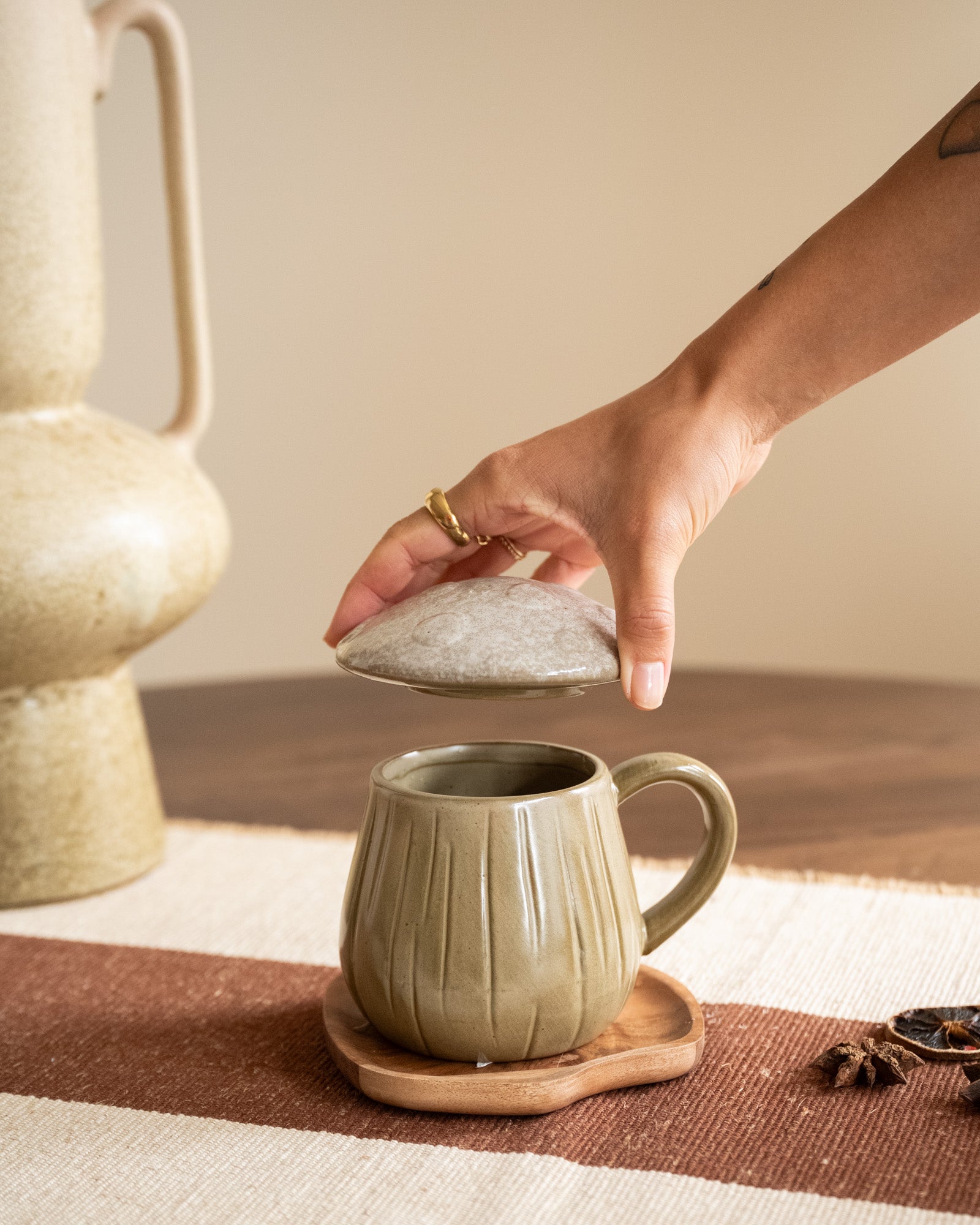 Add a touch of playfulness to your coffee break with the Lush Mushroom Mug. This porcelain mug with its mushroom design is guaranteed to bring a smile to your face. Perfect for coffee, tea, or hot chocolate, it's also a unique gift idea for any lover of unique mugs.