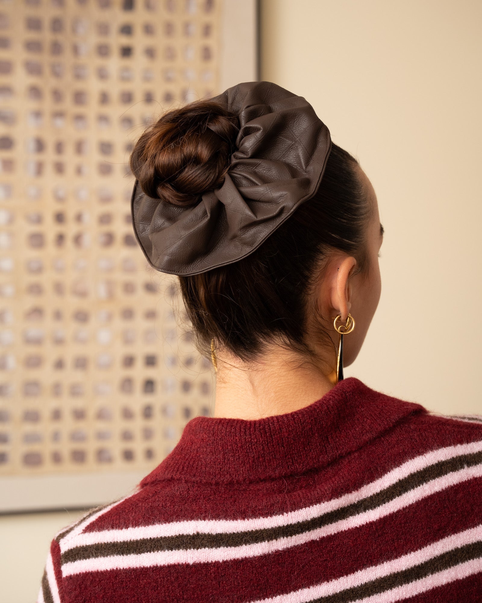 PU scrunchie with a subtle diamond pattern.