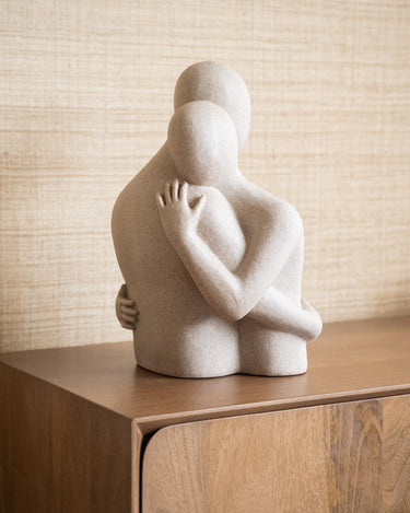 An ode to love and connection. This large abstract sculpture of a deep embrace brings a sense of warmth and tenderness into your home. The soft shapes and sand-colored finish make it a timeless piece that captures emotion in pure simplicity. Perfect for a Japandi interior. A work of art with loving meaning!