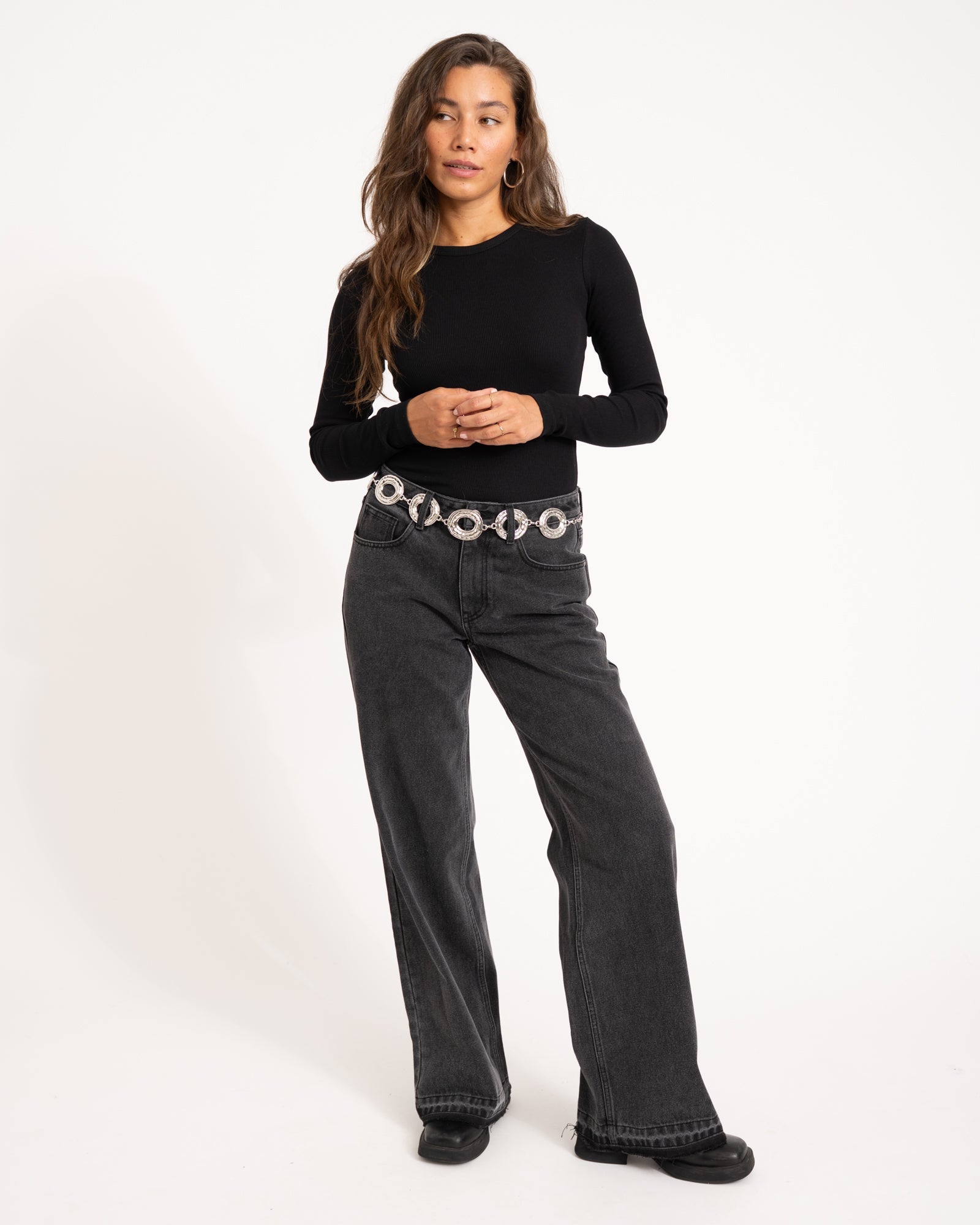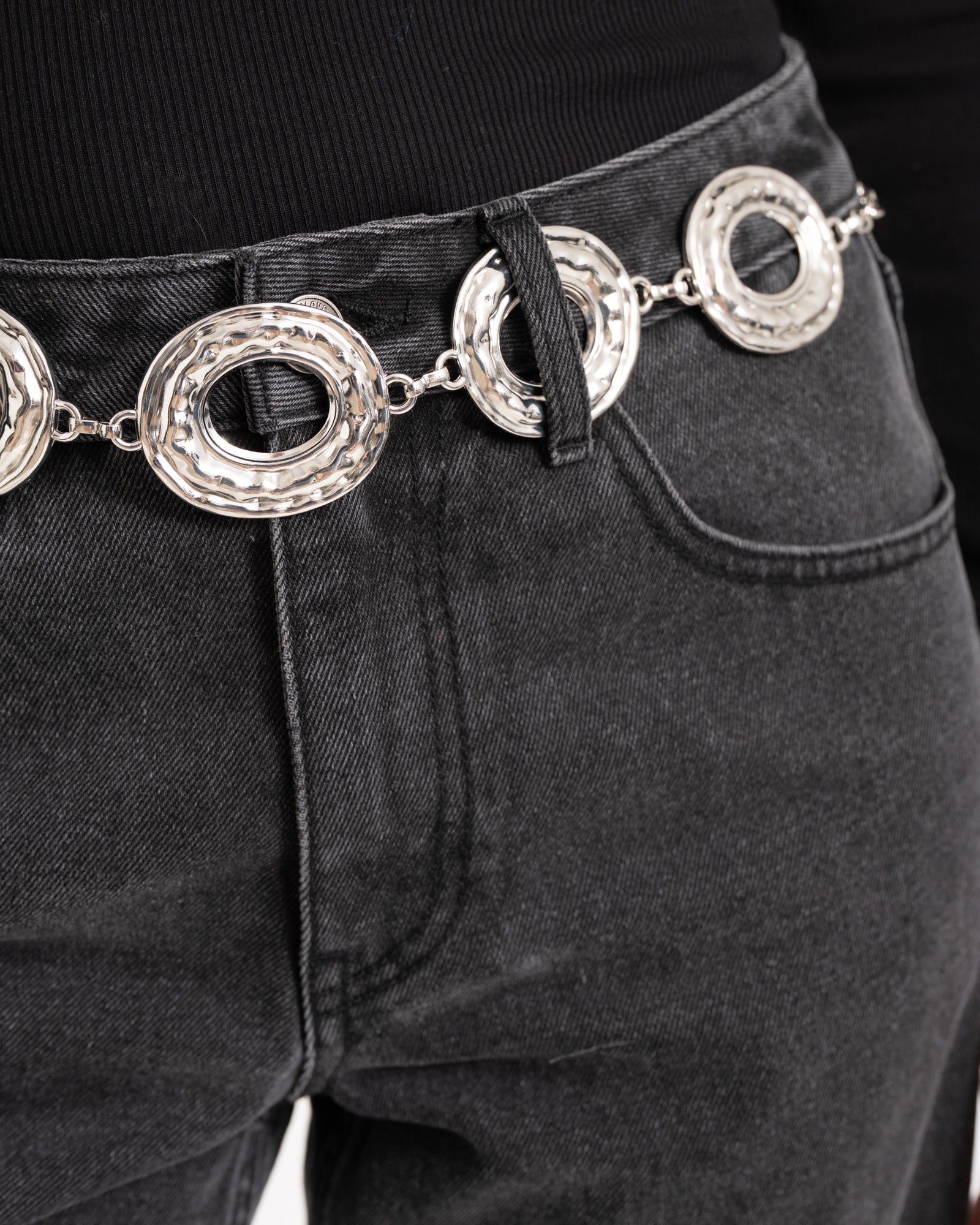 A cool belt with oval silver details! It's a great way to spruce up any outfit!