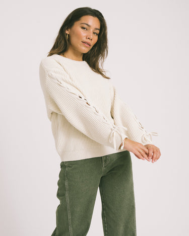 The Brisa Crew Neck Knit in Vanilla Ice is the perfect basic knit that effortlessly complements any wardrobe. Crafted from a soft, flat knit, this sweater offers both comfort and flexibility.