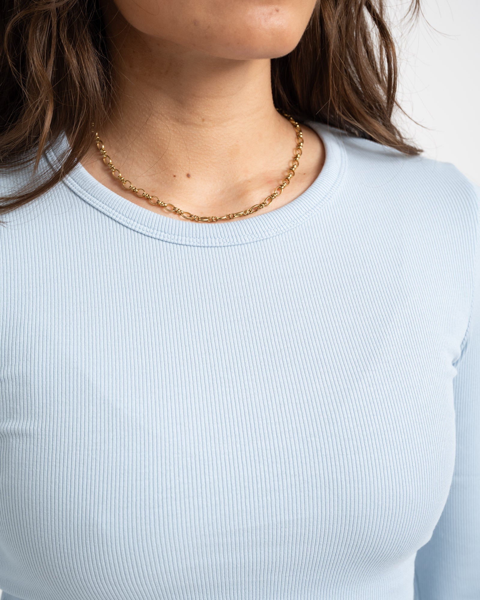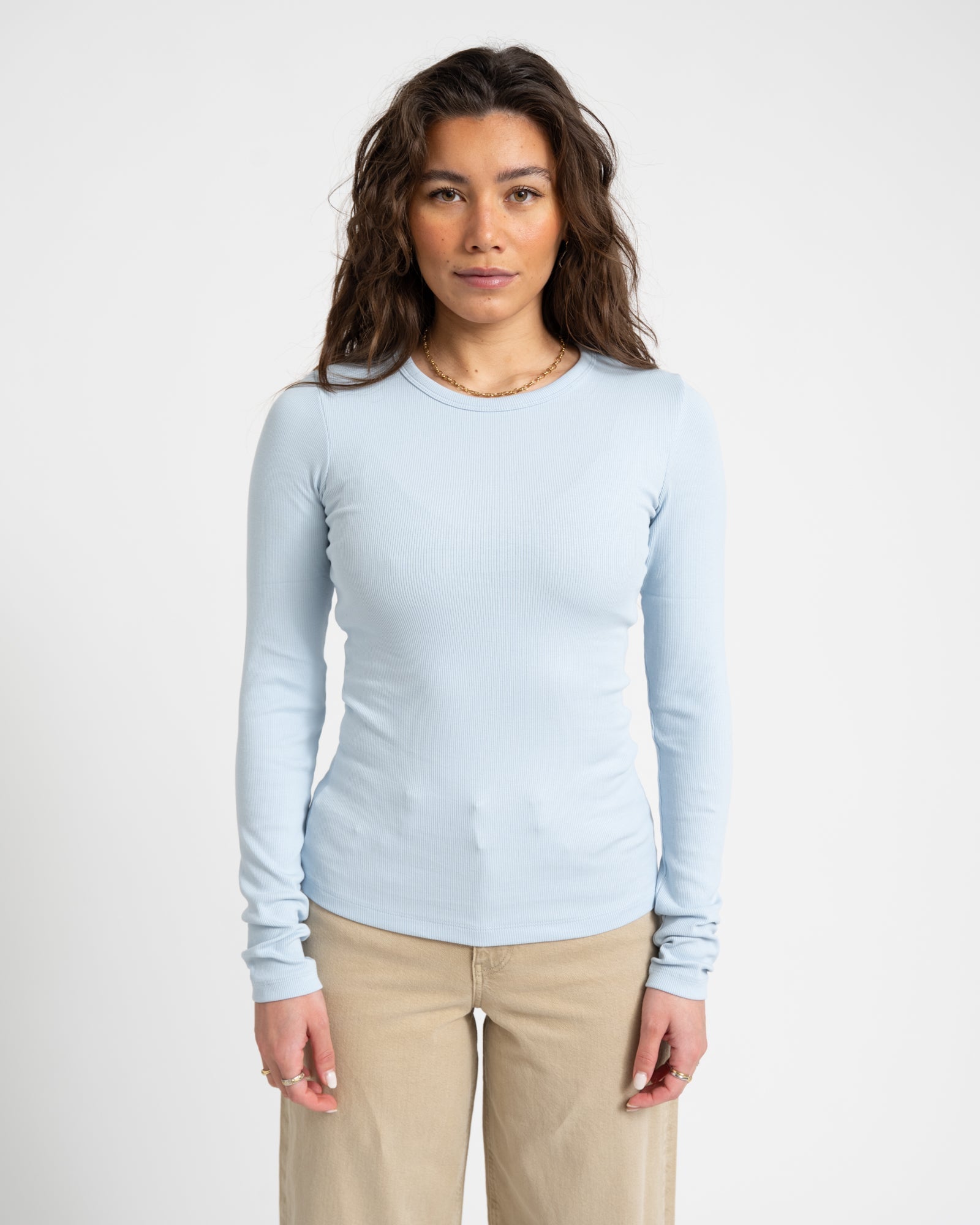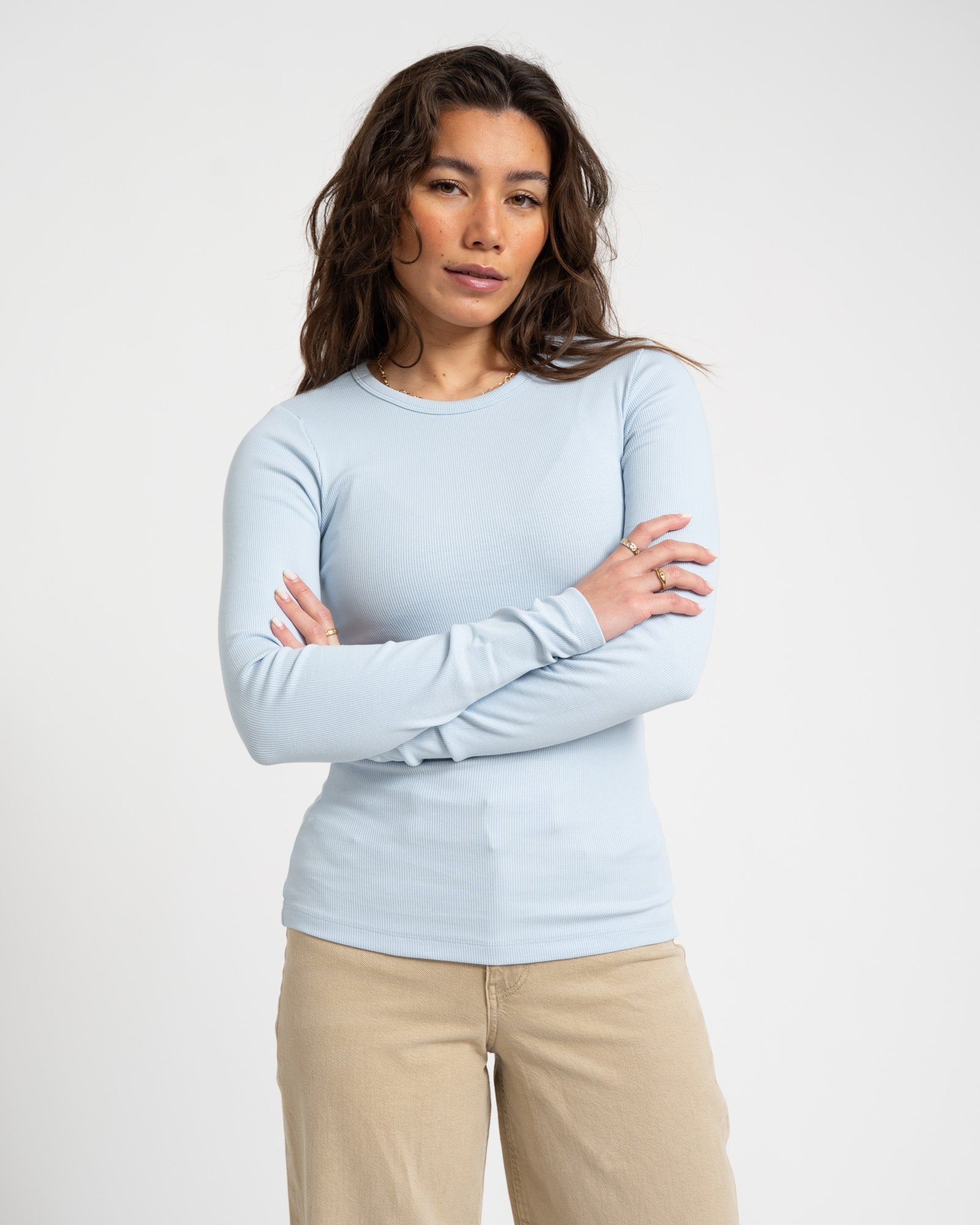 A fitted basic made from partially cotton with a fine ribbed design for a unique look and feel.