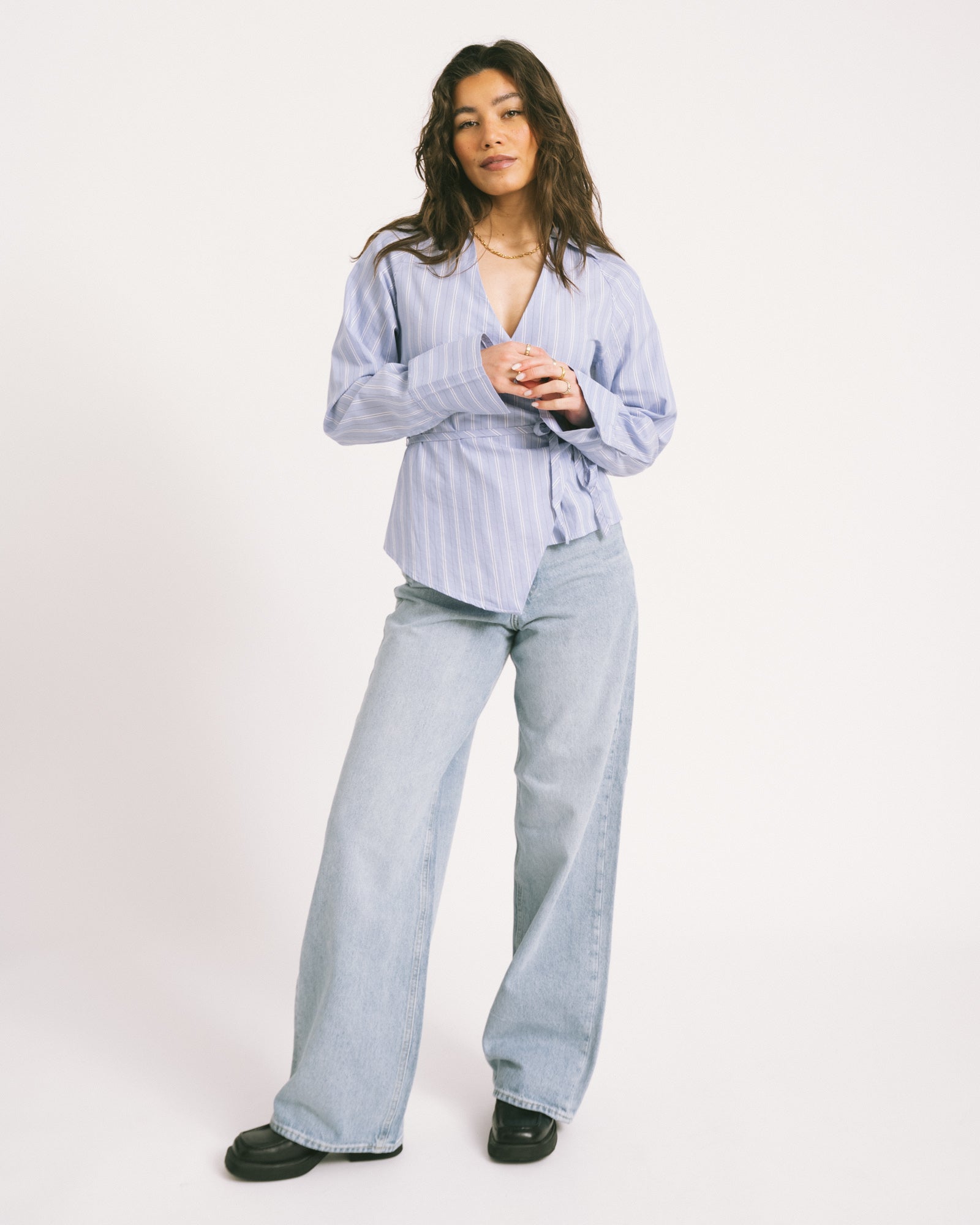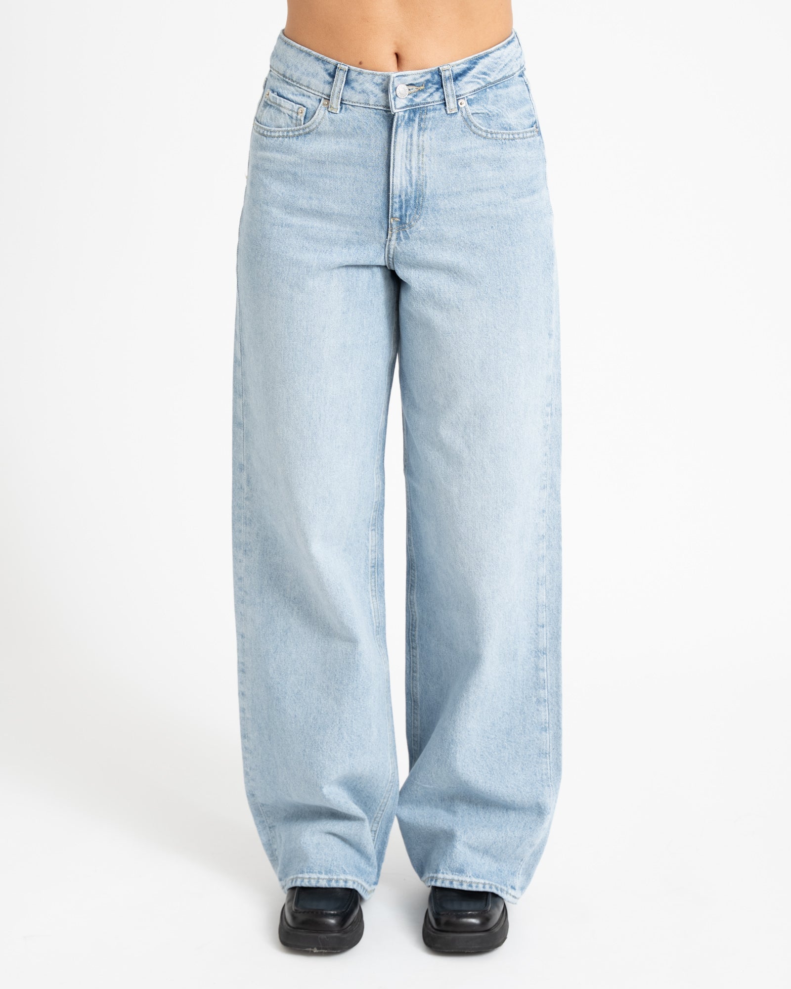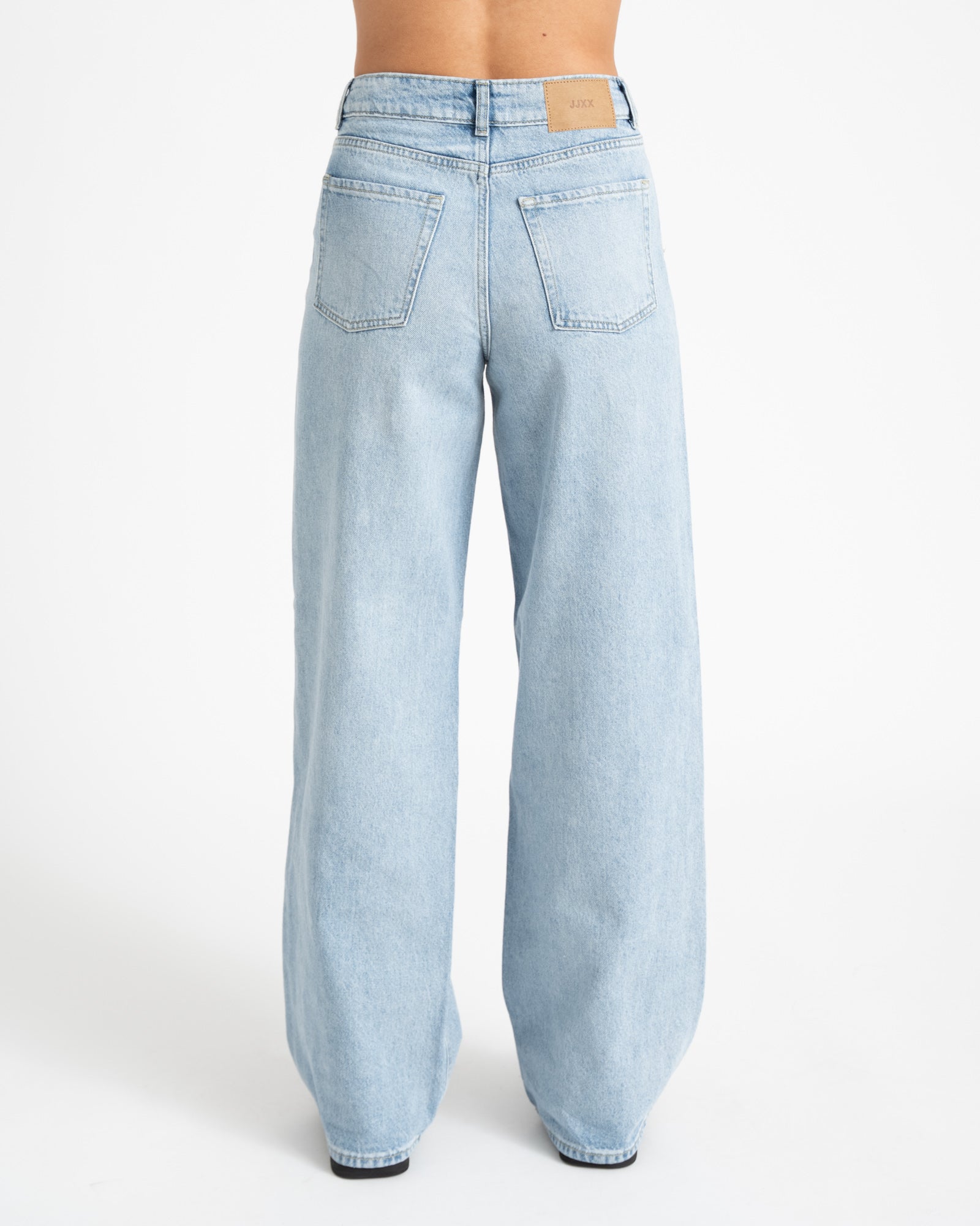 Elevate your everyday look with these high-waisted, wide-leg jeans. Designed for comfort and versatility, they're a wardrobe essential. They have a relaxed fit and a blue wash for a soft feel and a put-together look.