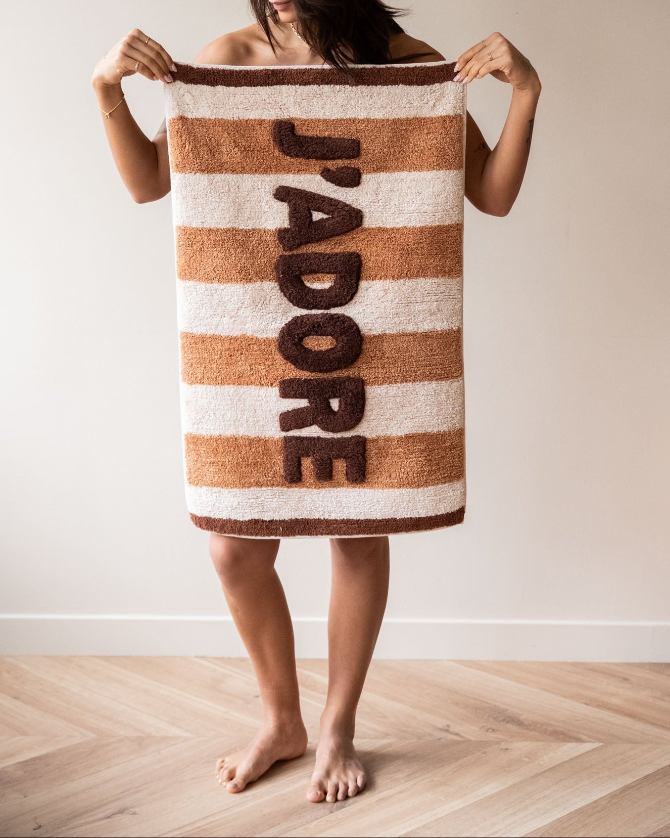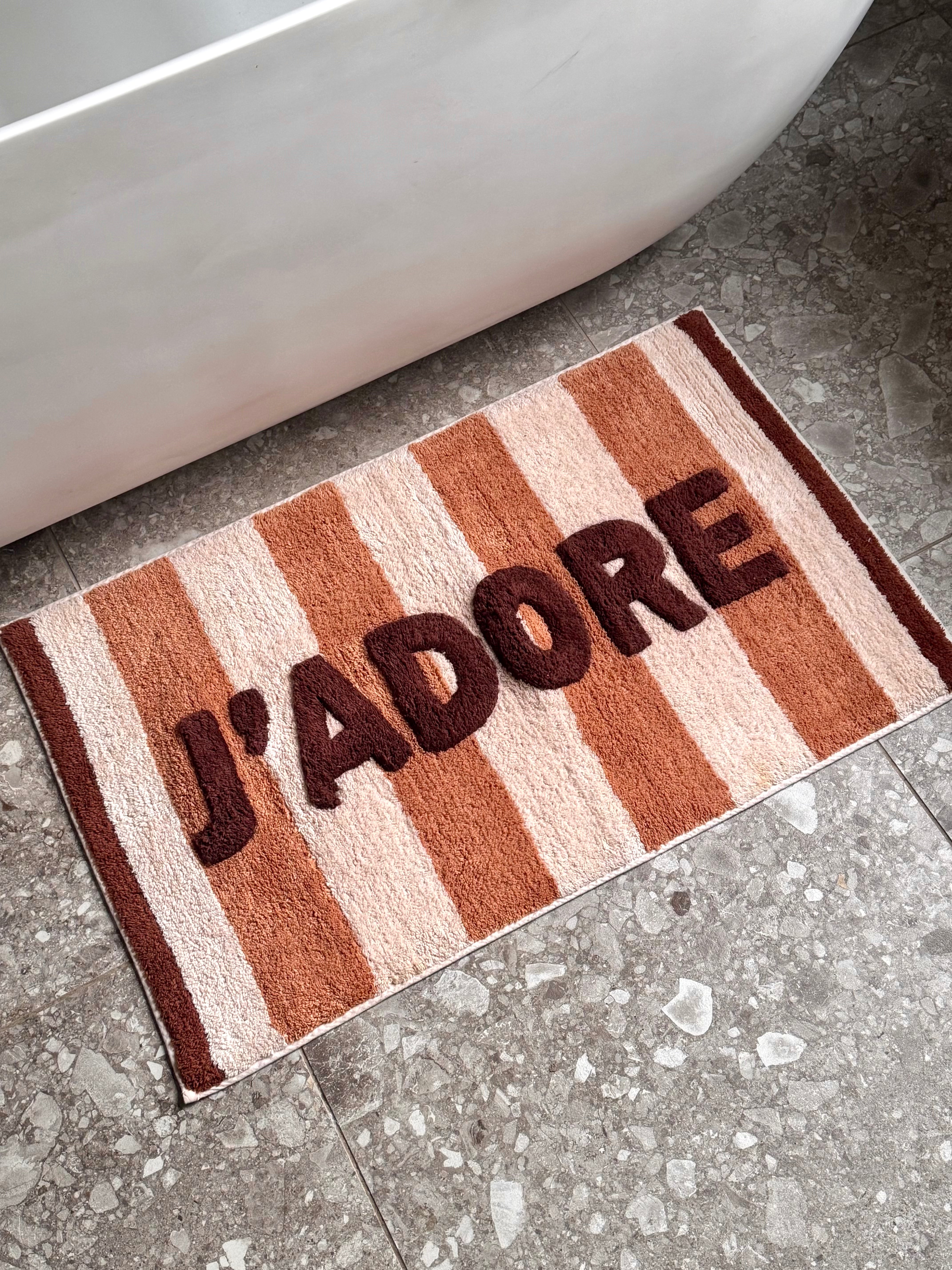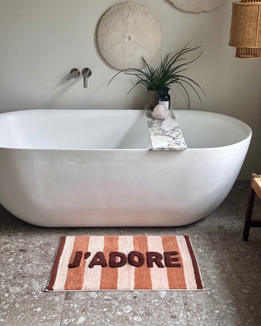 The J'adore Stripes Bath Mat instantly gives your bathroom a warm, playful upgrade. This soft bath mat with graphic stripes and a "J'adore" detail feels wonderful under your feet and instantly creates a warm atmosphere. Perfect for pairing with neutral tones or as a statement piece in your bathroom.
