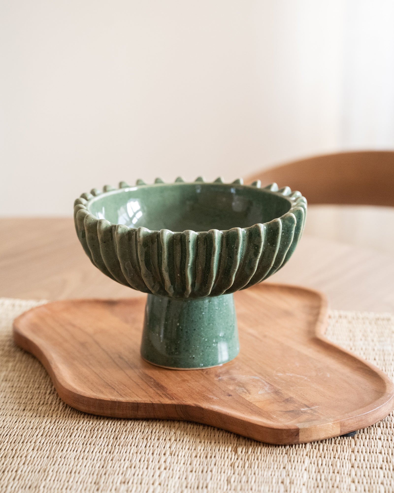 Deco Bowl on Foot Speckled Green