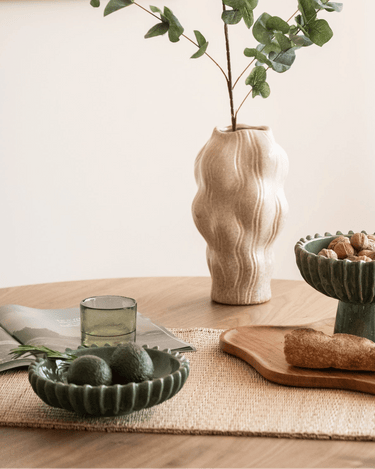 This ceramic bowl in a soft green with a subtle speckled glaze brings peace and character to your interior. It's beautiful as a fruit bowl, for snacks, keys, or other small items. Its organic design makes it a perfect fit for a natural, modern interior.