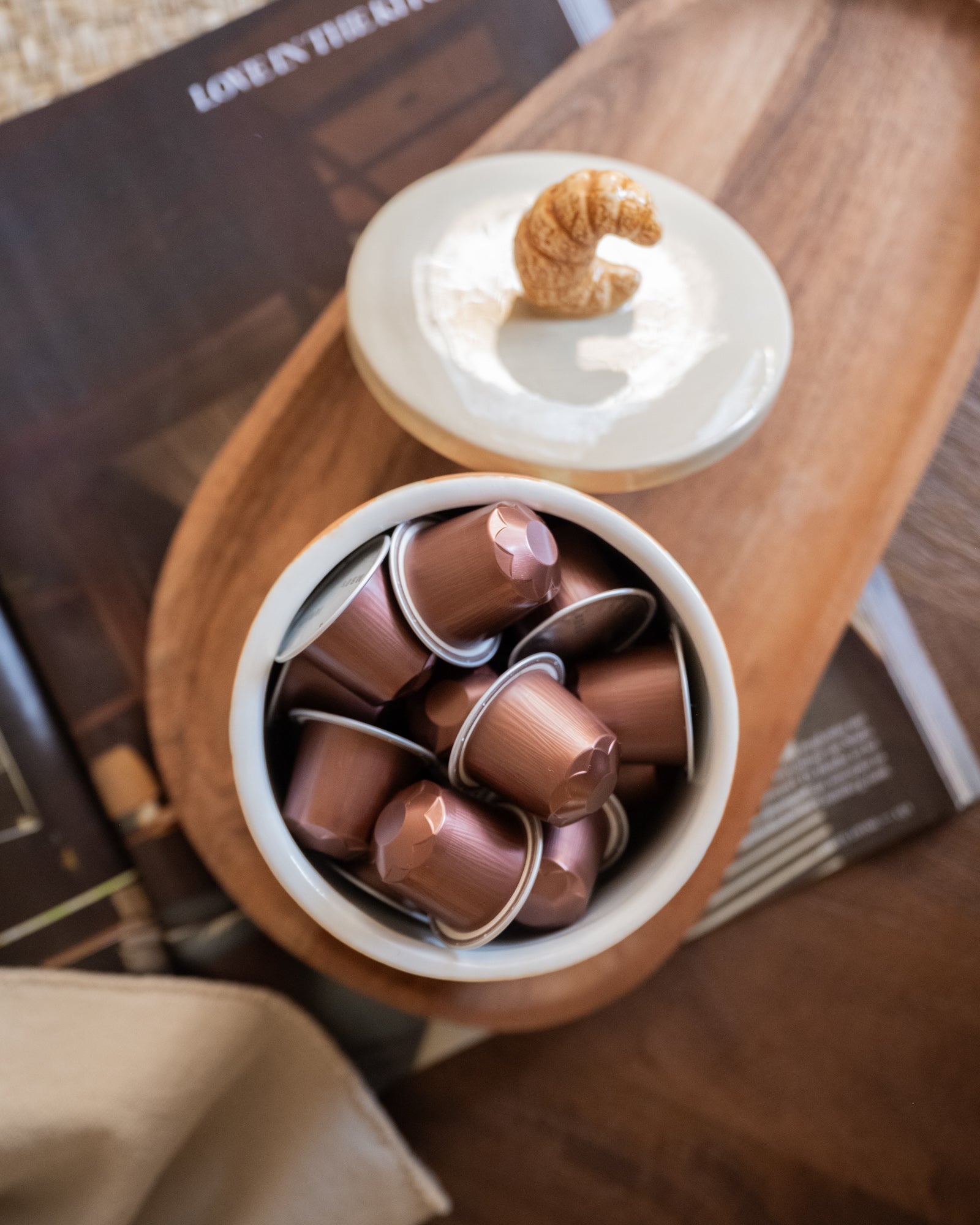 This handmade storage jar brings a playful and cozy atmosphere to your home. With its croissant design, it's perfect for storing small items or as a decorative accent in the kitchen.