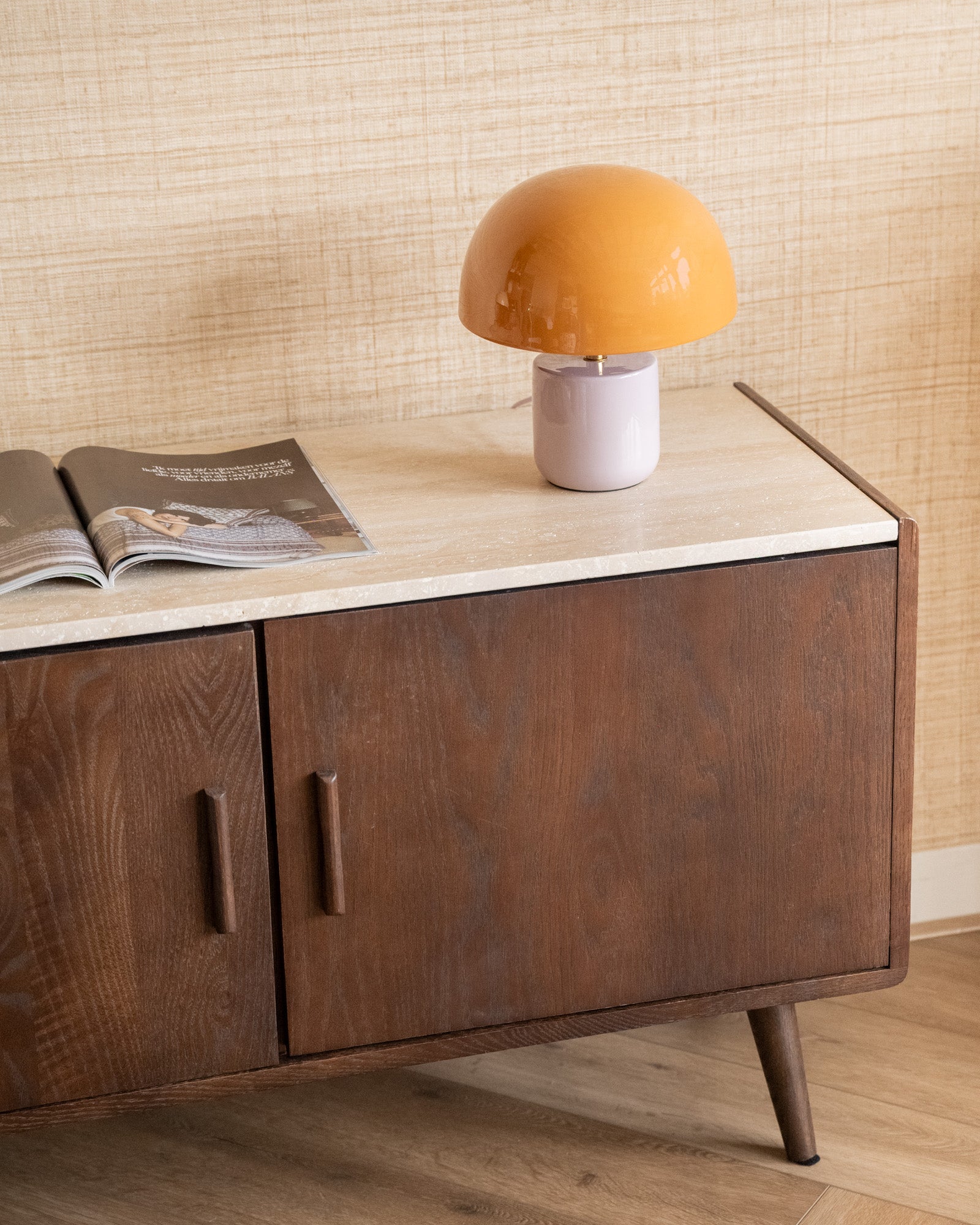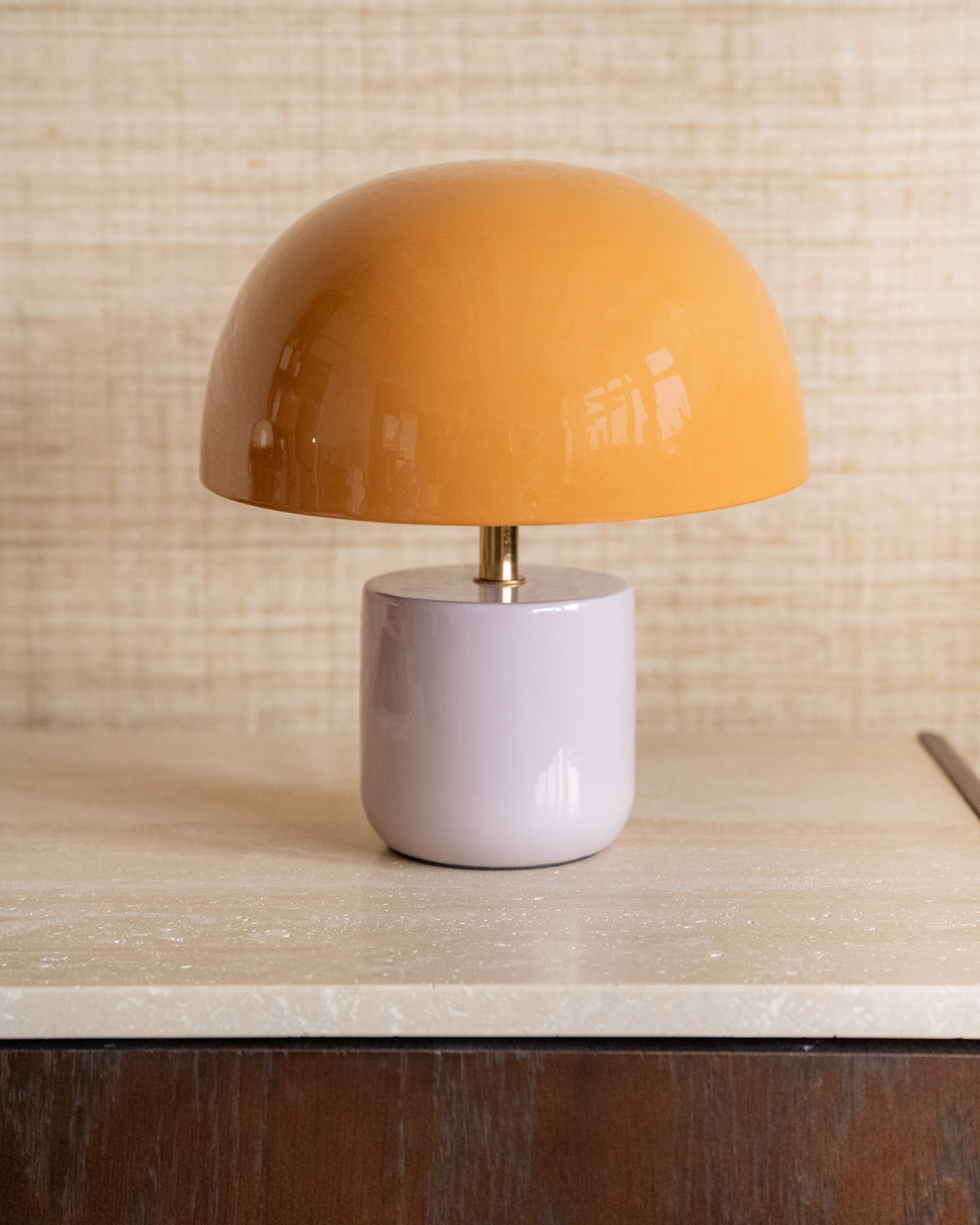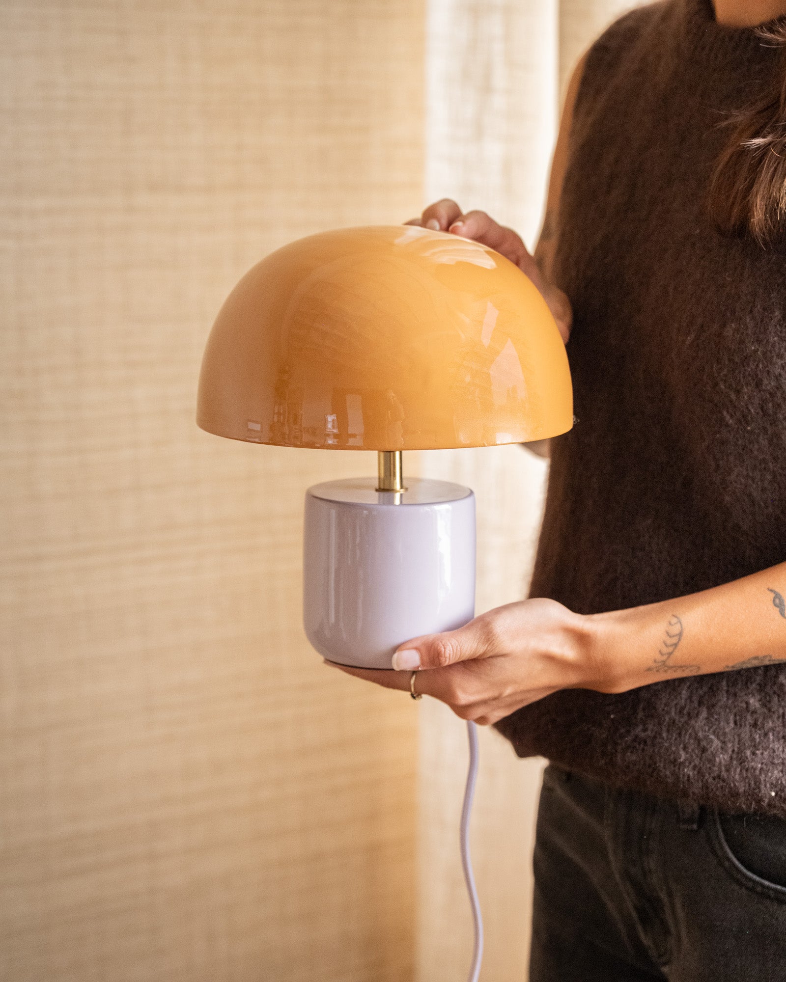 Add a playful and stylish accent to your interior with this Mushy table lamp. The striking combination of warm brown and soft lilac creates a cheerful, modern look. Perfect to light up a cozy corner or as an eye-catcher on a cupboard or bedside table. A real must-have for those who love color with character!