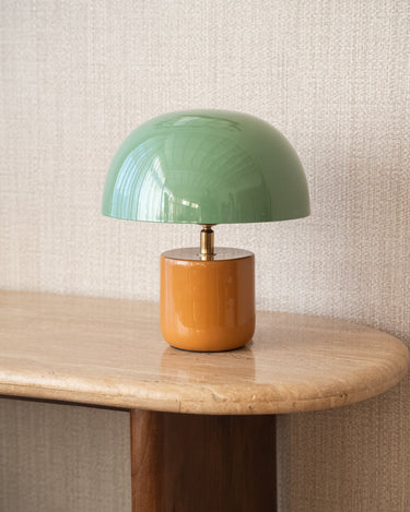This table lamp is a real eye-catcher in your home. The playful colour combination of fresh green and warm orange-brown immediately creates atmosphere. Perfect for your dresser, bedside table or in a cosy corner. Turn it on for instant cosiness!