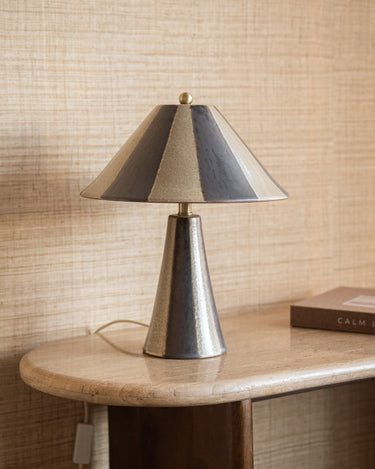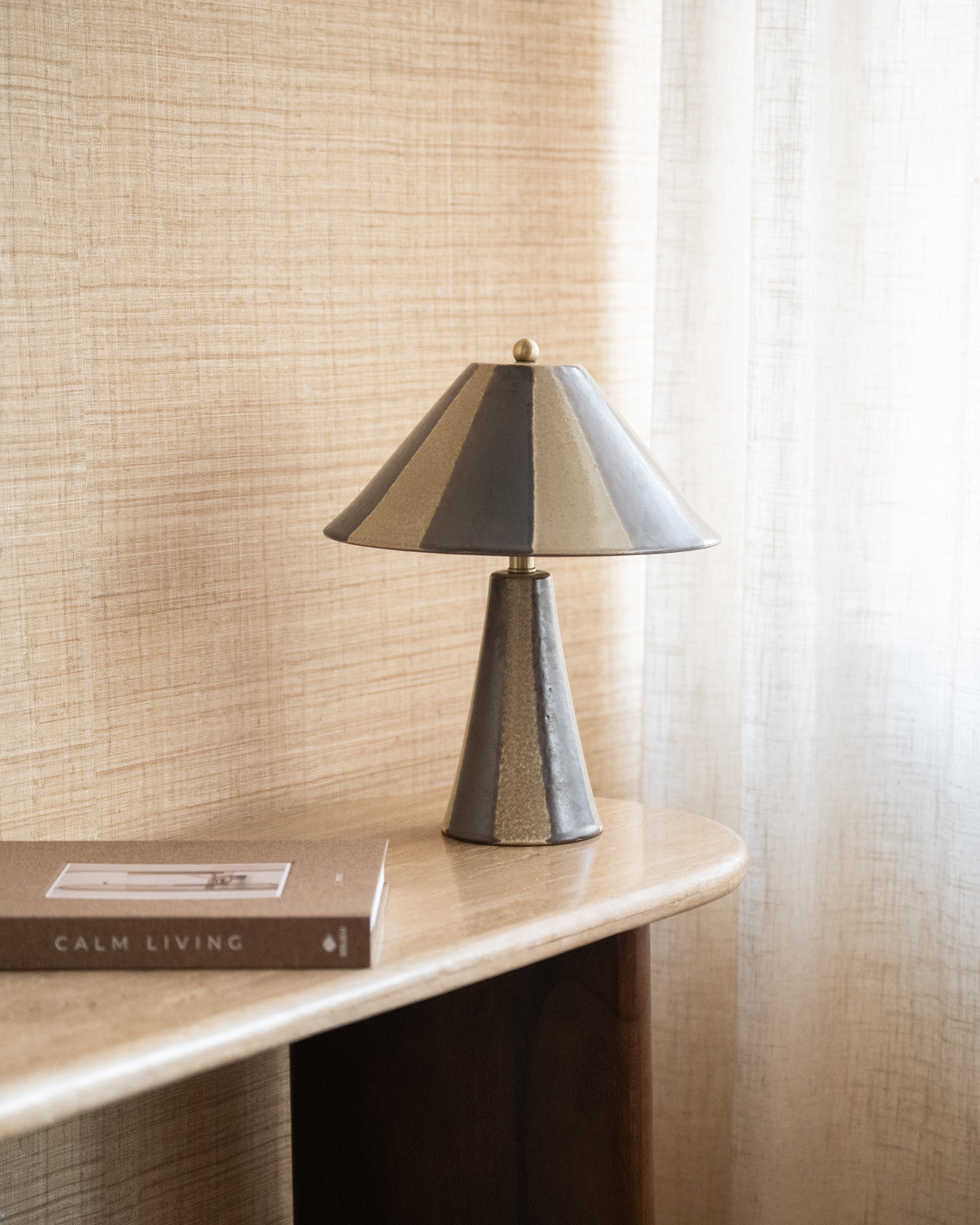 The Lino Striped Ceramic Brown Table Lamp is a stylish eye-catcher with a handcrafted look. This ceramic lamp combines soft sand tones with graphic stripes, creating a warm, tranquil ambiance in your interior. Perfect for a dresser, bedside table, or as a statement piece on your desk.